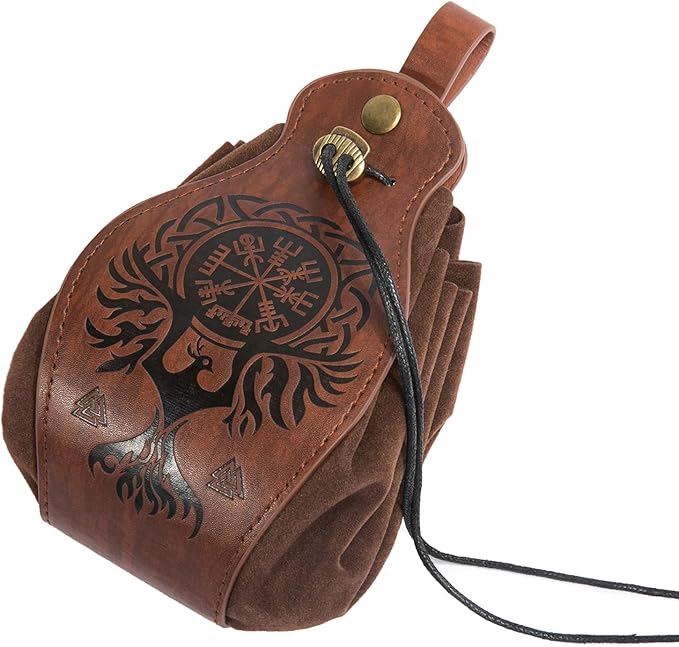HiiFeuer Medeival Faux Leather Pouch, Portable Drawstring Purse, Vintage Belt Pouch Dice Bag For LARP Ren Faire
