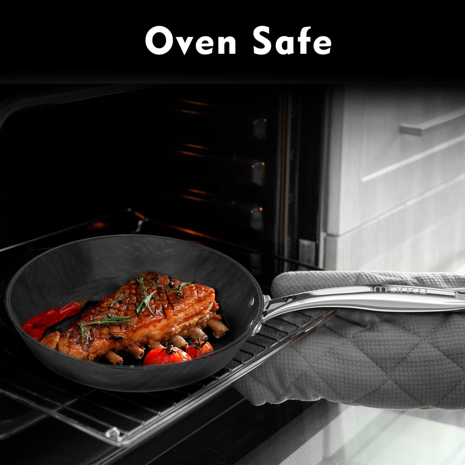 • OVEN SAFE: Cook with confidence as the nonstick frying pans can safely withstand temperatures up to 464°F. Oven-safe up to 320 degrees F. The ability to heat evenly in the oven and not easily deformed makes the food baked in the nonstick pan even more delicious! GREAT GIFT AND TRUSTWORTHY: imarku is dedicate