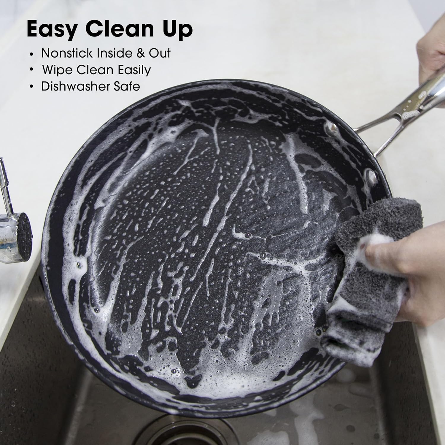 • EASY CLEANUP : These nonstick pans are hand washing is more durable and saves time. Most messes will wipe clean easy. To preserve the nonstick pan, preferably wash your cookware with a soap and sponge.
