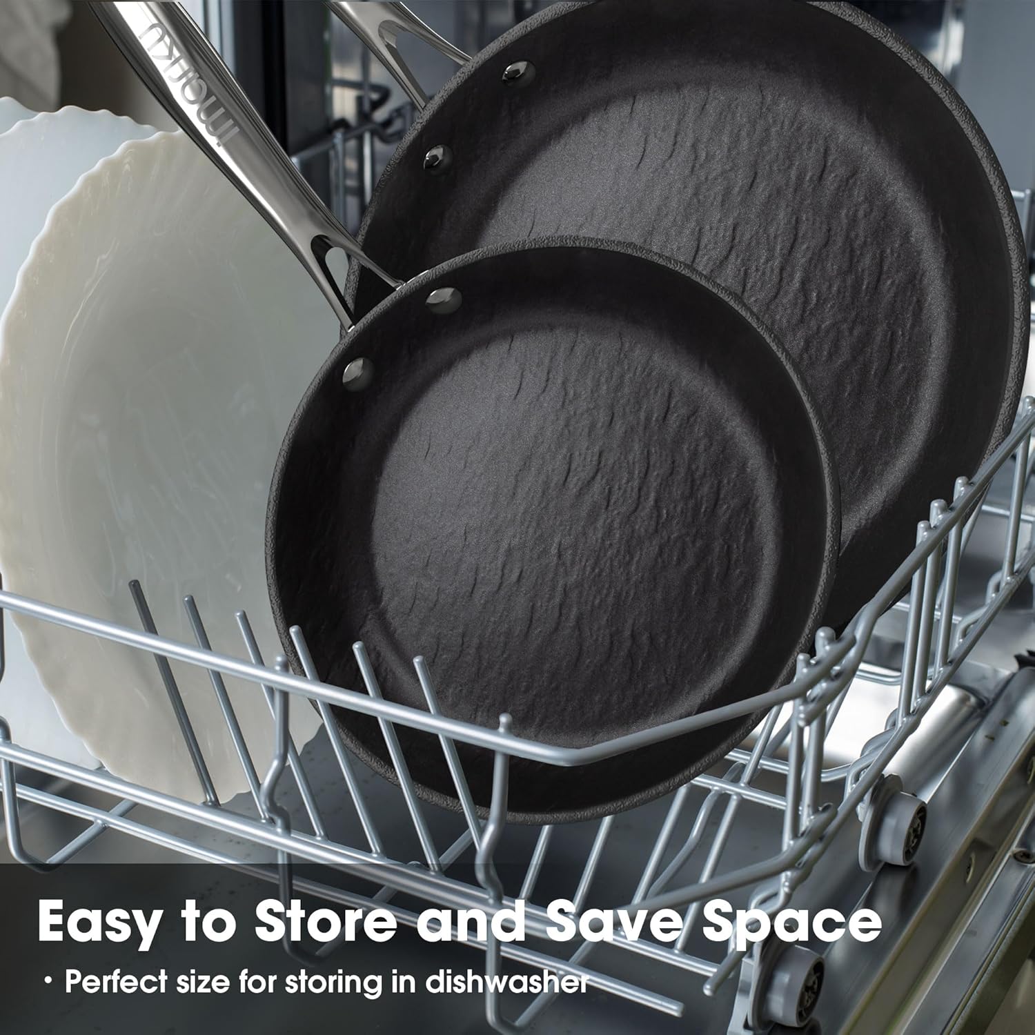 • GREAT GIFT AND TRUSTWORTHY: imarku is dedicated to enhancing your user experience. We provide a free return within 3 months and a free exchange within 1 year if you encounter any problems with the product. Our non-stick cookware included 10/12-inch frying pan set, are under strict quality control and beautifully packaged, it is a perfect home decoration gift and holiday gift.