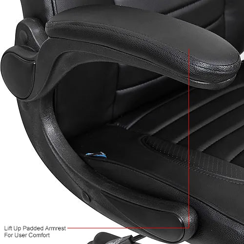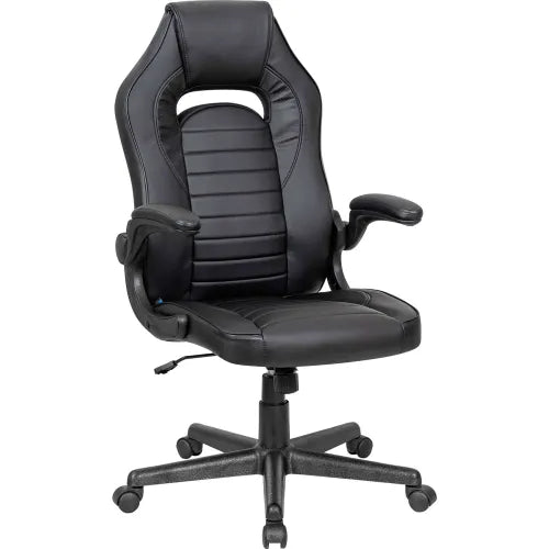 A serious chair for the serious gamer. The Interion® Antimicrobial Racing Chair is ideal for any gamer looking to up their comfort level during competition. Ergonomic features like built-in height and tilt properties and adjustable armrests allow users to adapt to their gaming desk while staying comfortable. Durable metal construction and leather upholstery provide long-lasting comfort and support, with antimicrobial agents that protect the fabric from bacteria, mold, and more. Each chair has a five-legged base, with heavy-duty casters that support gamers and allow them to maneuver with ease. Class 3 gas lift. CAL117 certified. 1 Year Limited Warranty. Measures: 27" W x 26" D x 45.5" H.