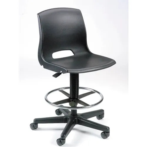 The stool from Interion® By Global Industrial is made with durability and comfort in mind. The contoured, molded polypropylene seat encourages good posture to fight fatigue and includes a ventilation slot for cool, dry comfort. Seat is supported by a tubular frame to withstand constant heavy use. One-piece molded stool seat is easy to clean. Pneumatic height adjustment raises seat from 21 to 31"H. Stool accommodates all users with a 17"W x 16"D seat and 16" square back. The 360° foot ring's height adjusts from 7-3/4 to 17-3/4". The 5 blade caster base allows stool to move easily. 2 Year Limited Warranty. Seat fully swivels 360°.
