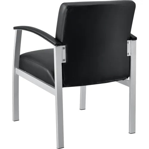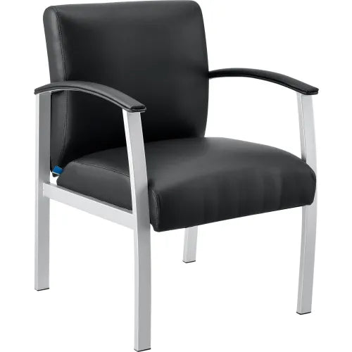 Interion® Synthetic Leather Reception Chair With Arms, Black W/ Silver Frame