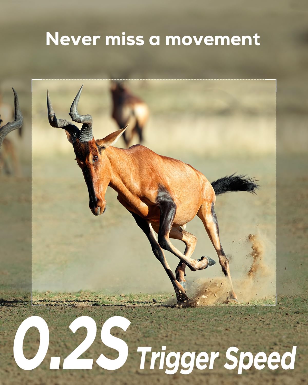 Ultra-high Resolution & Advanced No-glow Technology: 2K HD and 36MP ultra-high resolution deliver superb and vibrant images and clear audible videos both day and night. With 36 no-glow LEDs, this trail camera captures high-quality black and white night vision images and videos silently. Animals remain undisturbed, ensuring you never miss a shot.. the trail camera is produced for recording the spectacular wildlife moments. (SD card and batteries are NOT INCLUDED)