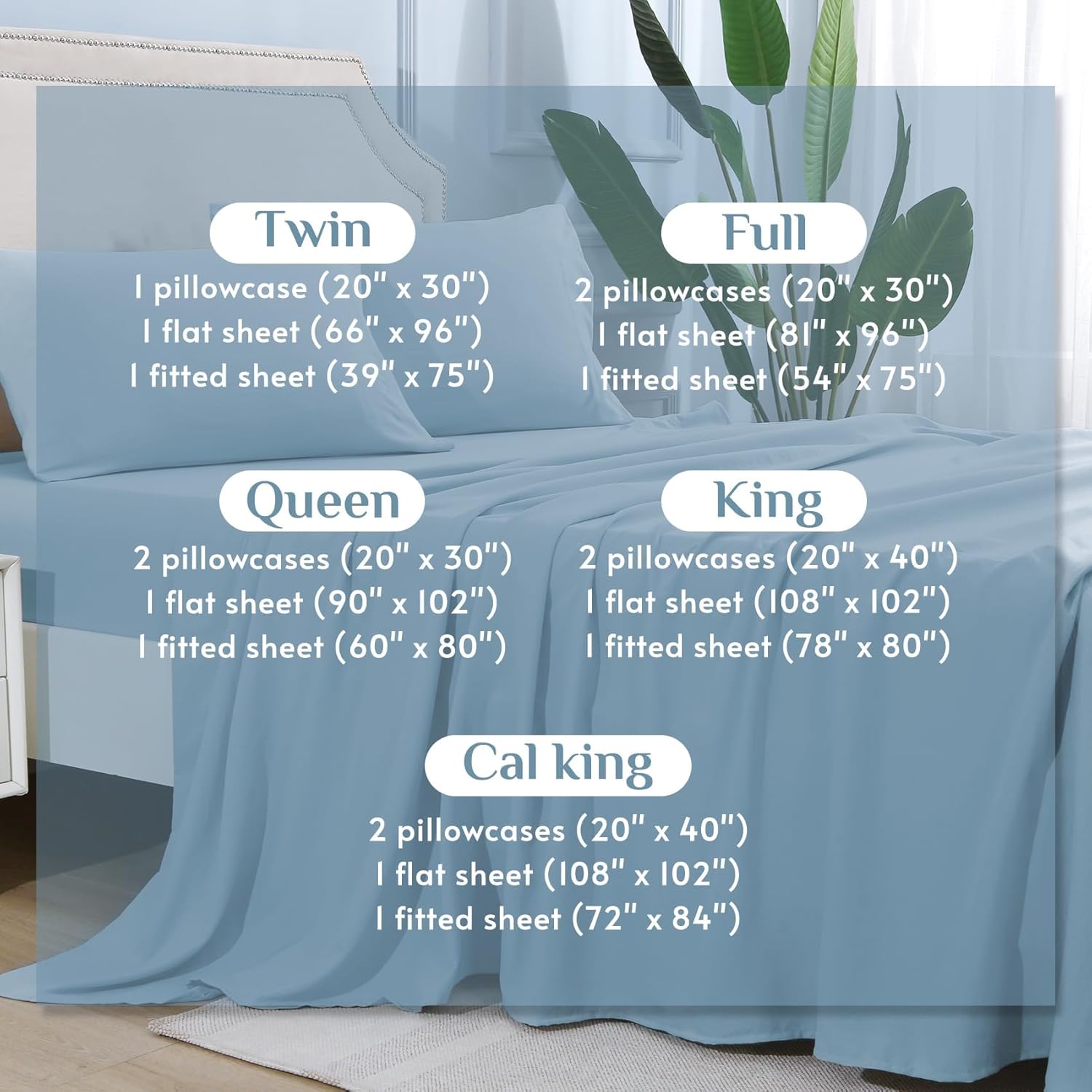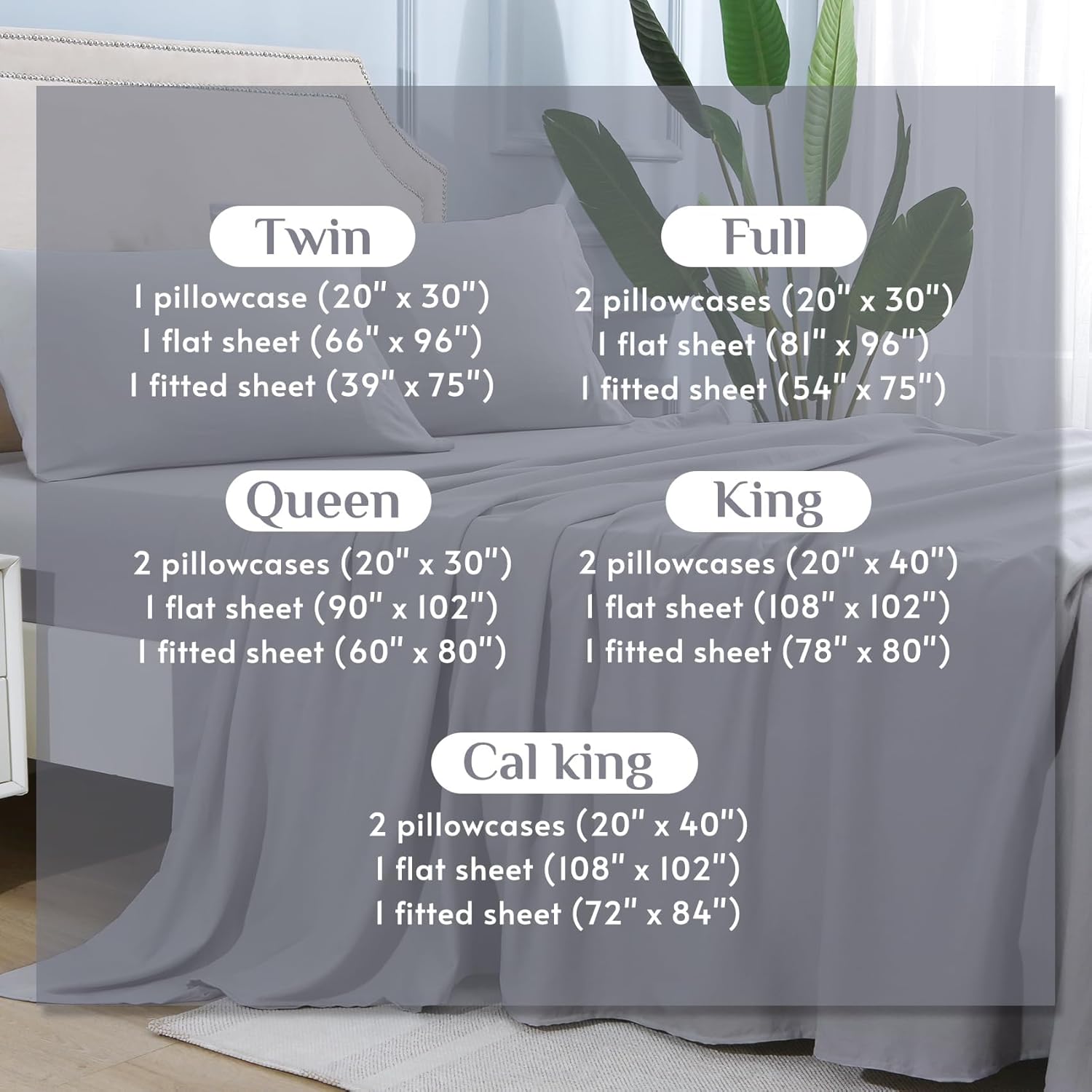 • 4 Piece Bed Sheet Set: This queen Size Bed sheet set includes 1 flat sheet (90" x 102"), 1 fitted sheet (60" x 80") tailored for 14-inch deep mattresses, and 2 pillowcases (20" x 30"), providing a unified and elegant update to your bedroom décor