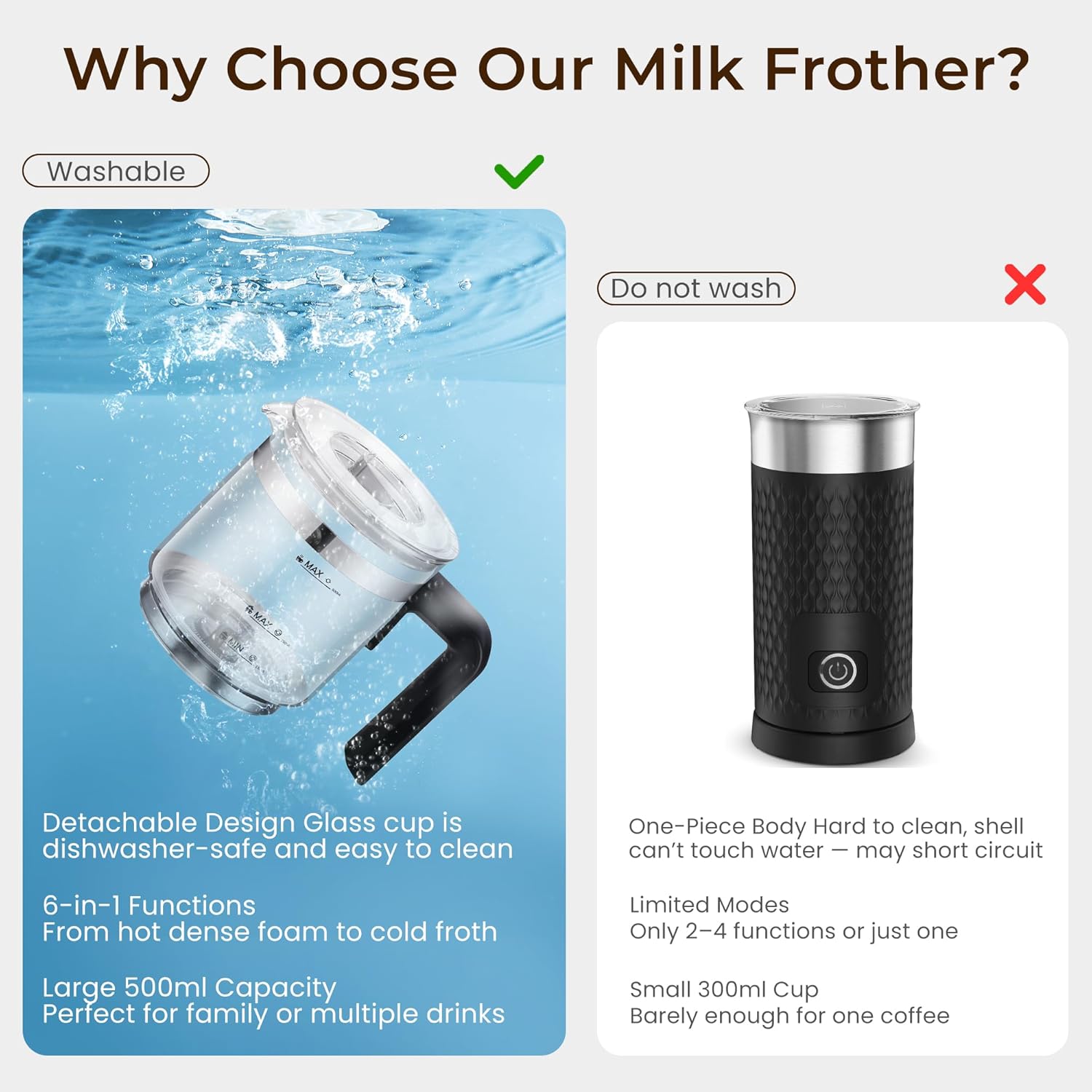 JXXM 6-IN-1 Milk Frother 600 Watts, 22 oz Split Stainless Steel