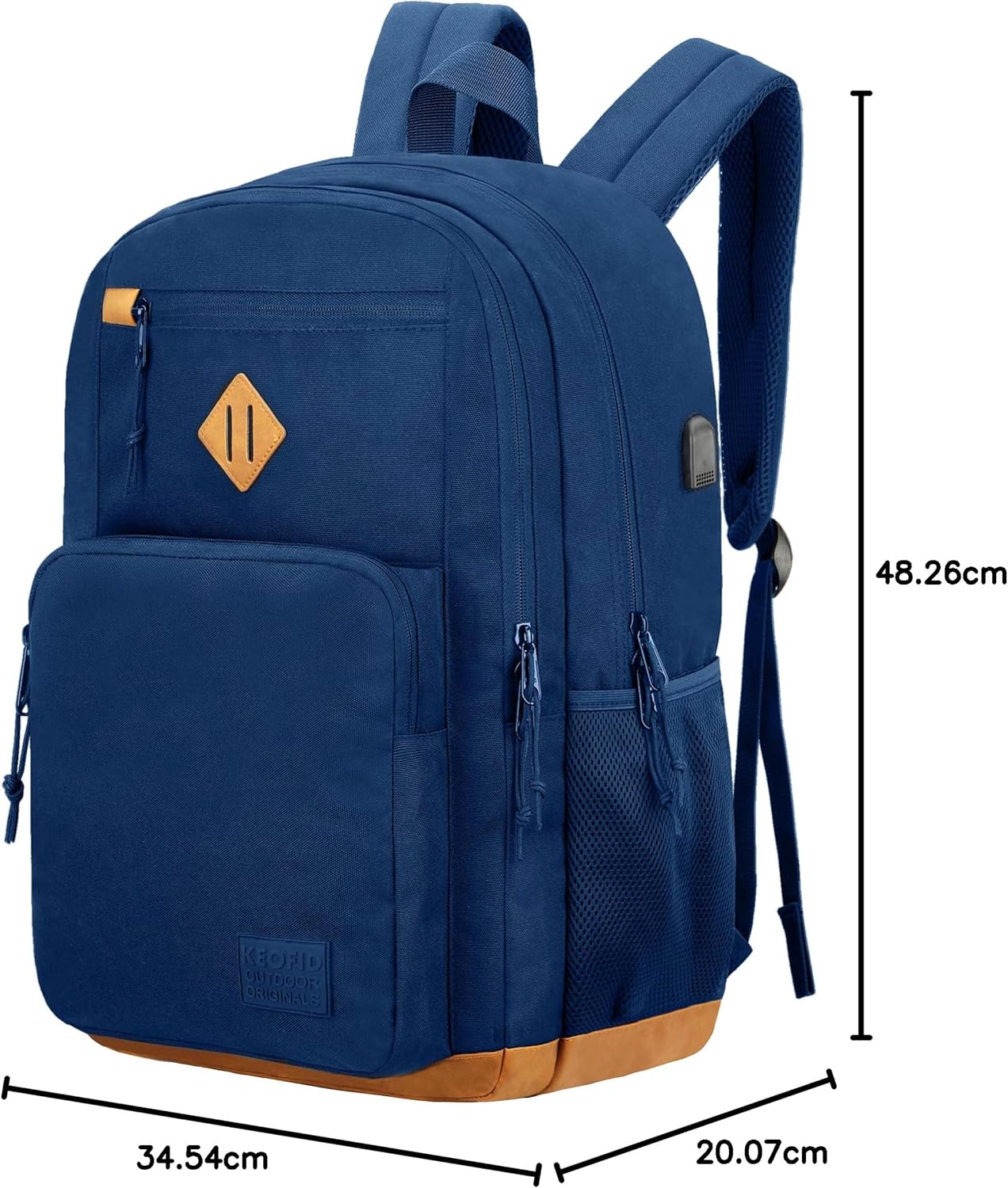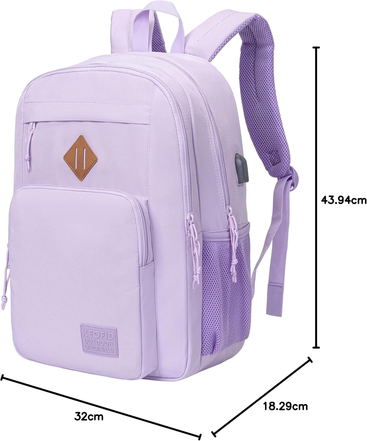 • Material and Size: KEOFID laptop backpack is made of water-resistant, durable fabric provides a sturdy and chic exterior. The backpack SIZE is 17.5*12.6*7.2 inches, easy to organize all personal items and fit up to 15.6" laptops.