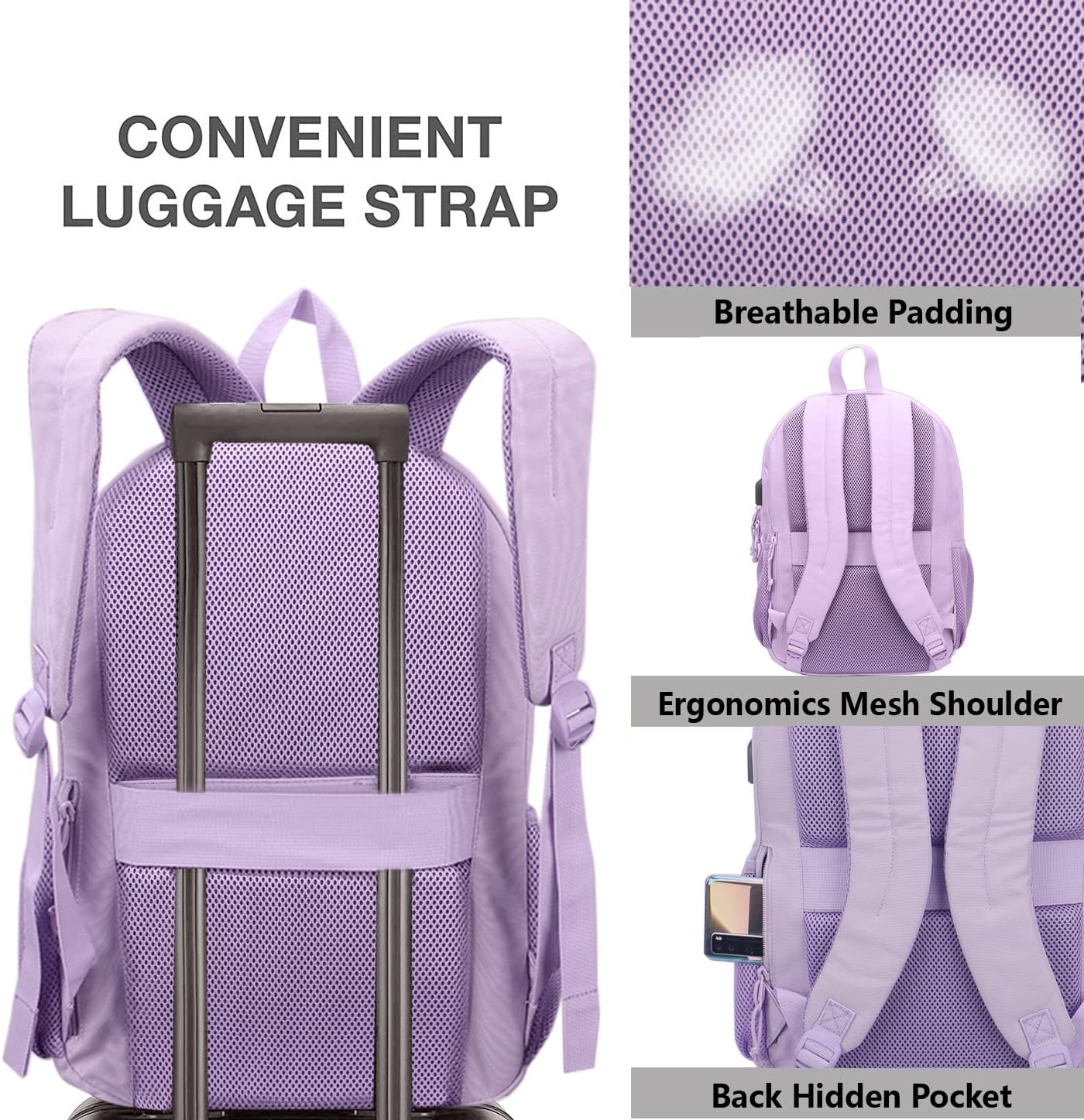 • Multi Function:Our backpacks with a built-in USB charging port, easy to charge your phone when on-the-go (Not includes the power bank). With a luggage belt on the back panel, it is easy to put on the luggage handle when travel. One hidden anti-theft pocket to protect your important items.