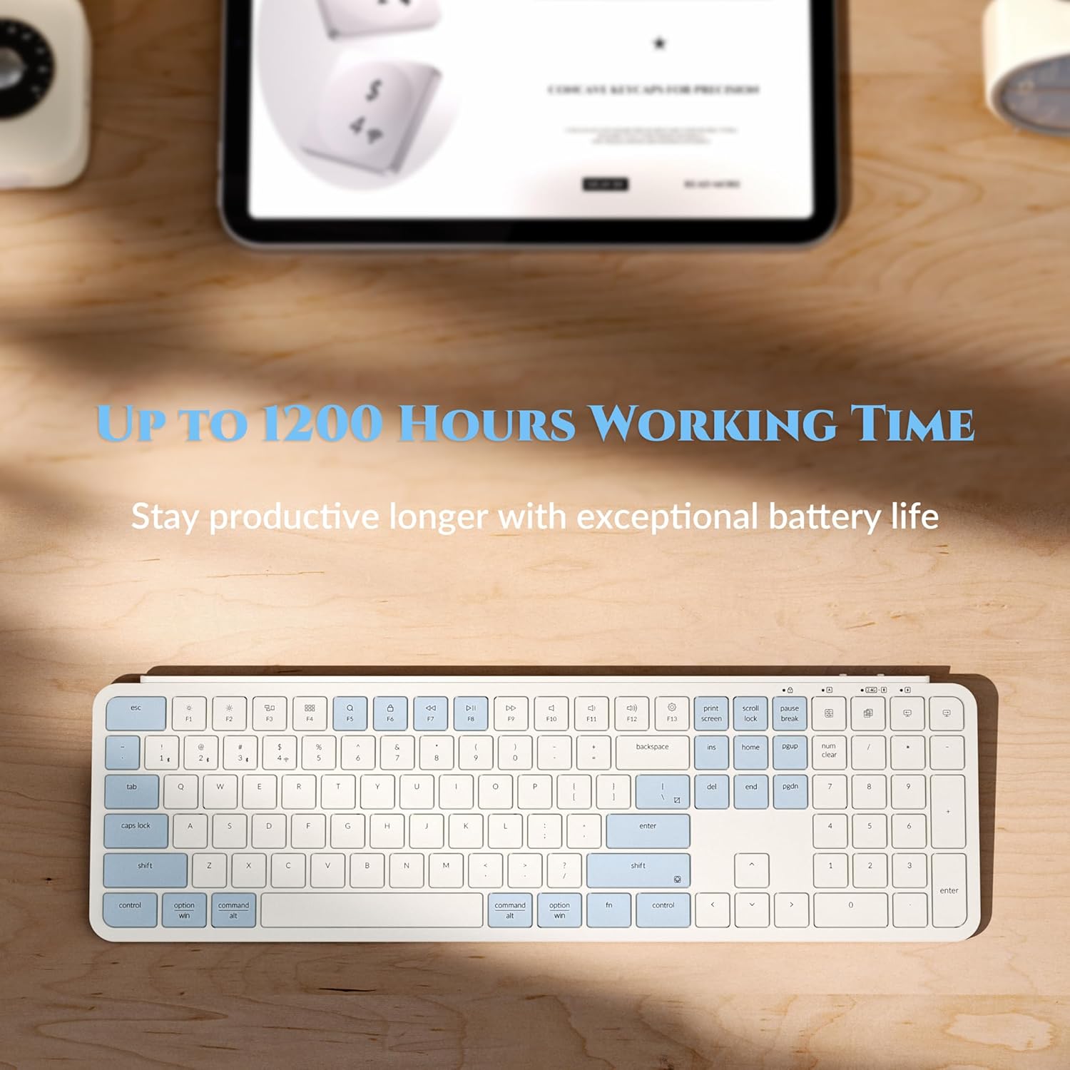 Ultra-slim Keychron B6 Pro-A lightweight, ultra-thin and full-size wireless keyboard with a 1,200-hour long battery life. It supports 2.4GHz wireless, Bluetooth, and wired modes, easily connecting to phones, tablets, PCs, and Macs. With ZMK customization, it offers tailored settings for home, office, or travel.