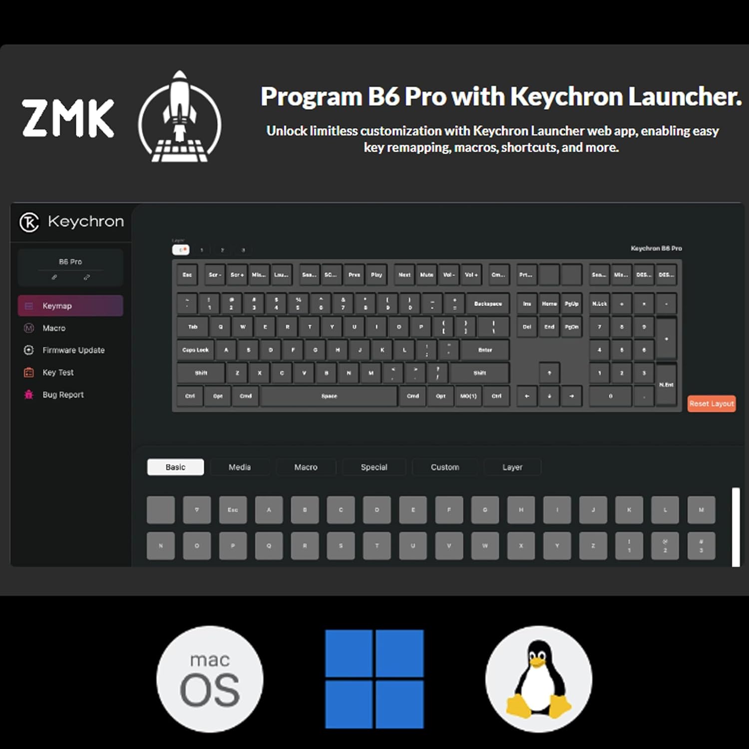 Program with Keychron Launcher- Unlock limitless customization with Keychron Launcher web app, enabling easy key remapping, macros, shortcuts, and more.