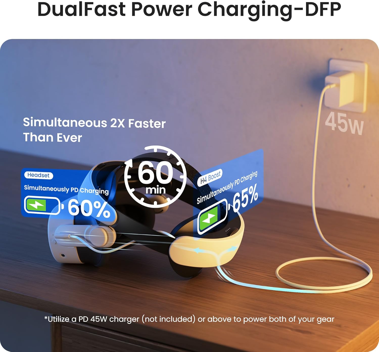 KIWI design H4 Boost Battery Halo Head Strap Compatible with Meta Quest 3 or Meta Quest 3S, Lightweight and DualFast Charging
