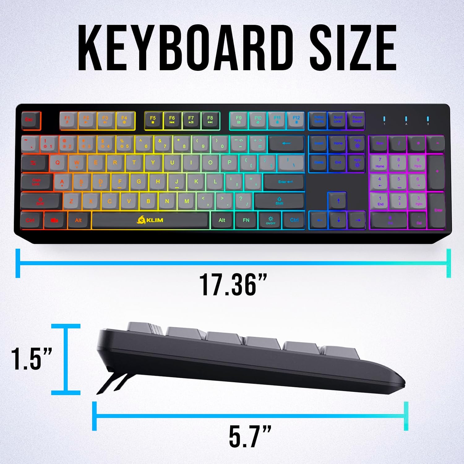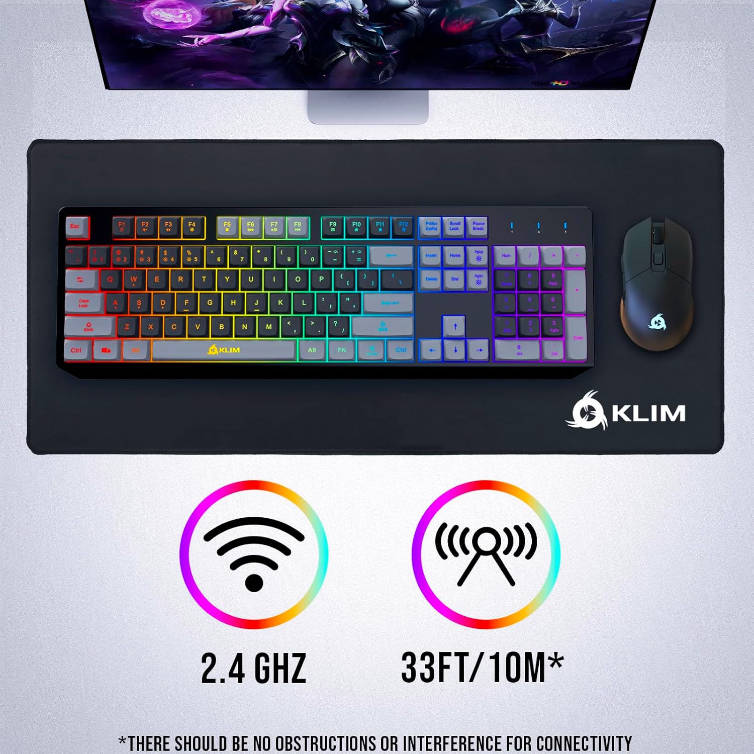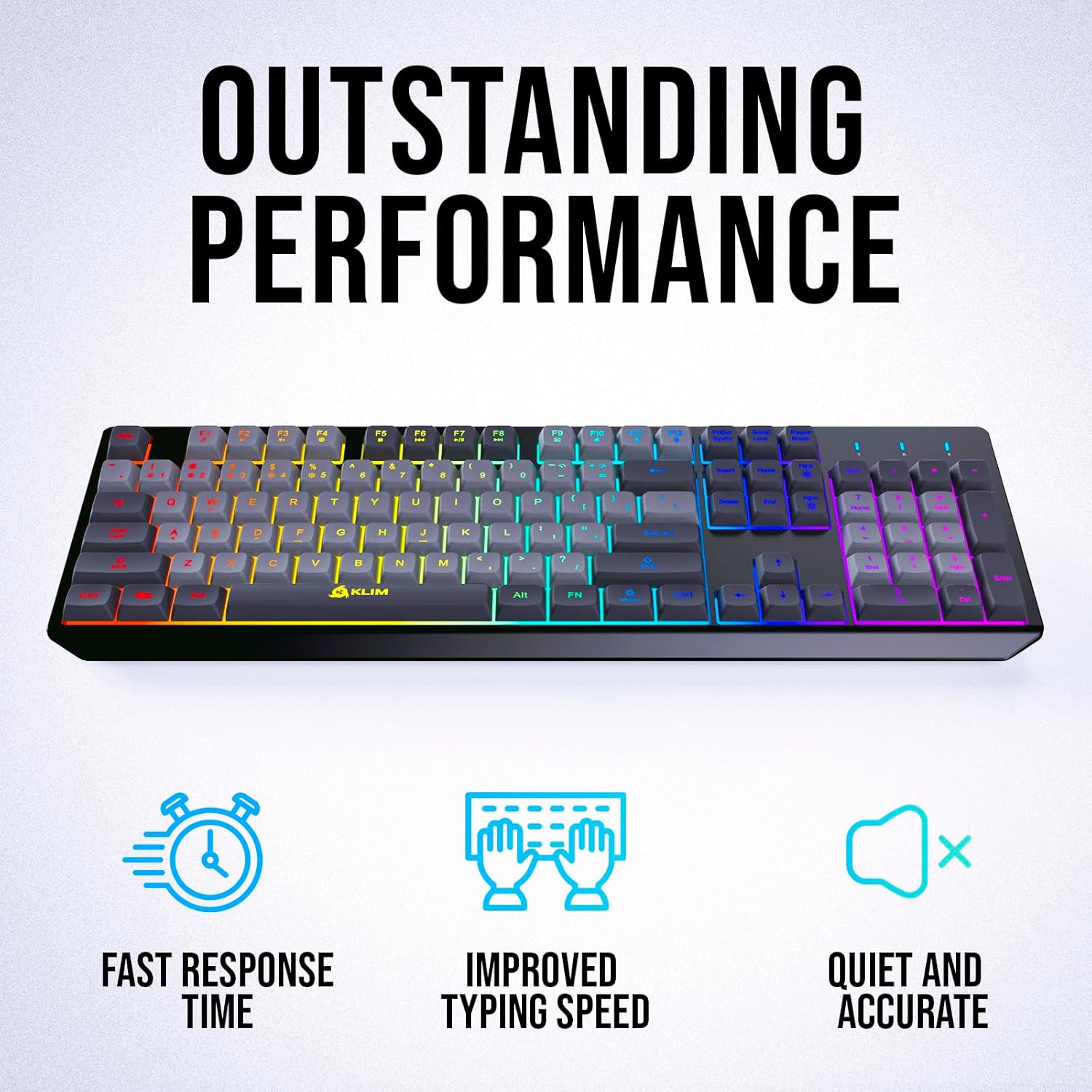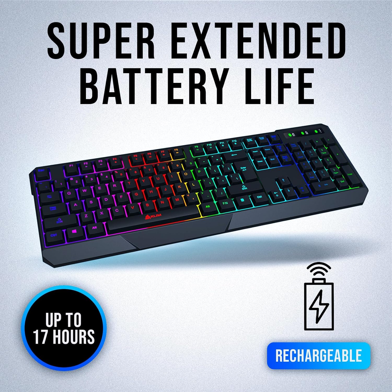 KLIM Chroma Wireless Gaming Keyboard RGB New - Long-Lasting Rechargeable Battery - Quick and Quiet Typing - Water Resistant Backlit Wireless Keyboard for PC PS5 PS4 Mac - Black