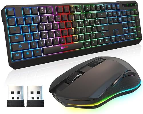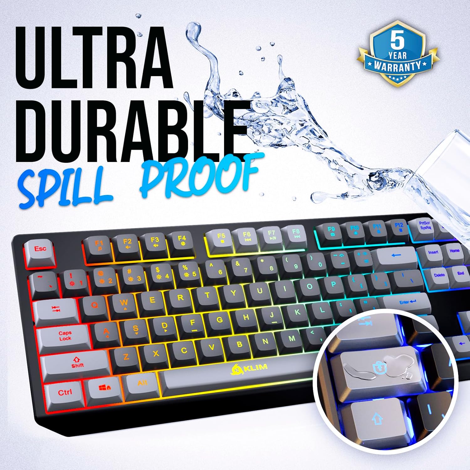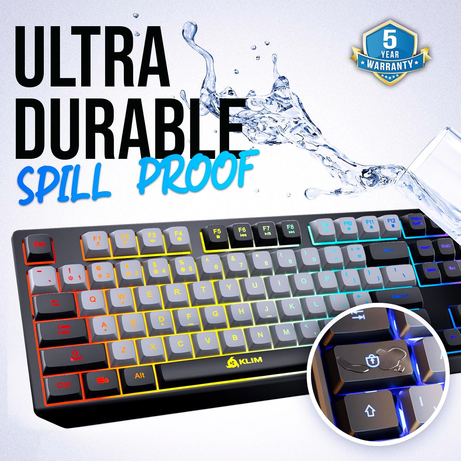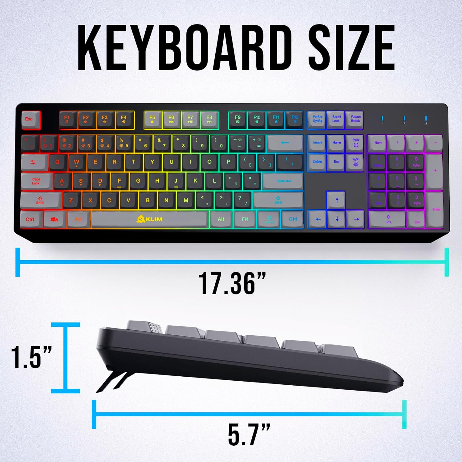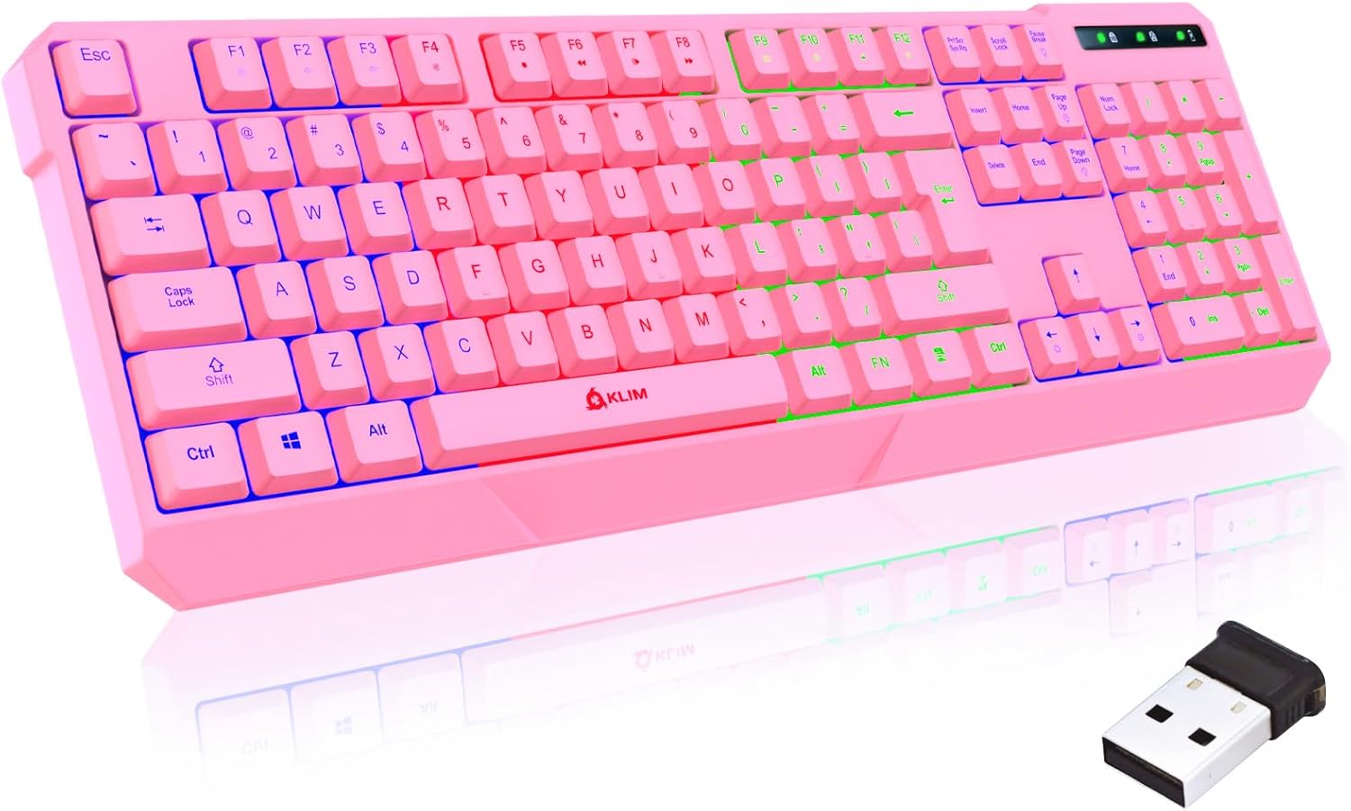 KLIM Chroma Wireless Gaming Keyboard RGB New - Long-Lasting Rechargeable Battery - Quick and Quiet Typing - Water Resistant Backlit Wireless Keyboard for PC PS5 PS4 Mac - Black