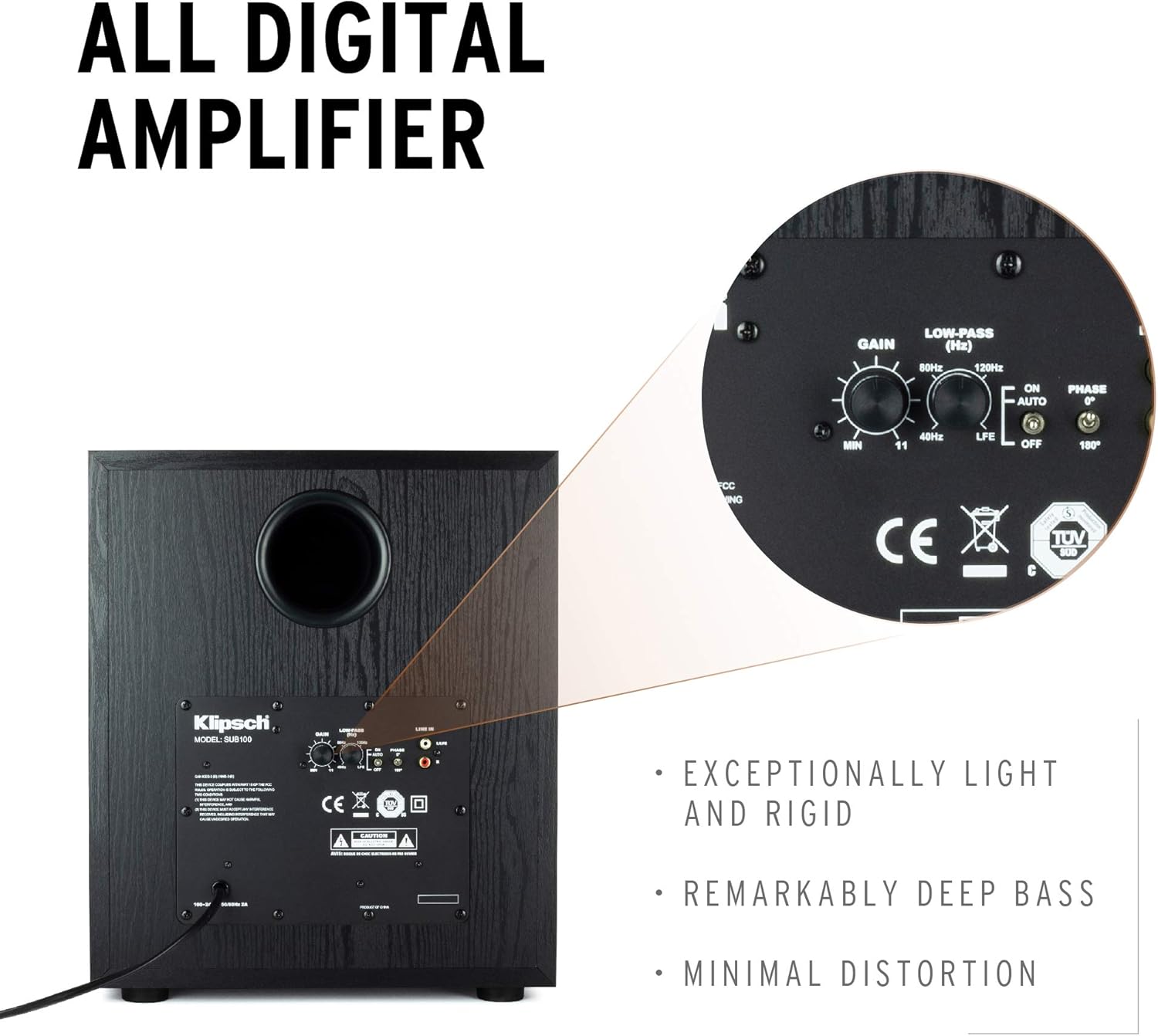 Klipsch Synergy Black Label Sub-100 10” Front-Firing Subwoofer with 150 Watts of Continuous Power, 300 watts of Dynamic Power, and All-Digital Amplifier for Powerful Home Theater Bass in Black