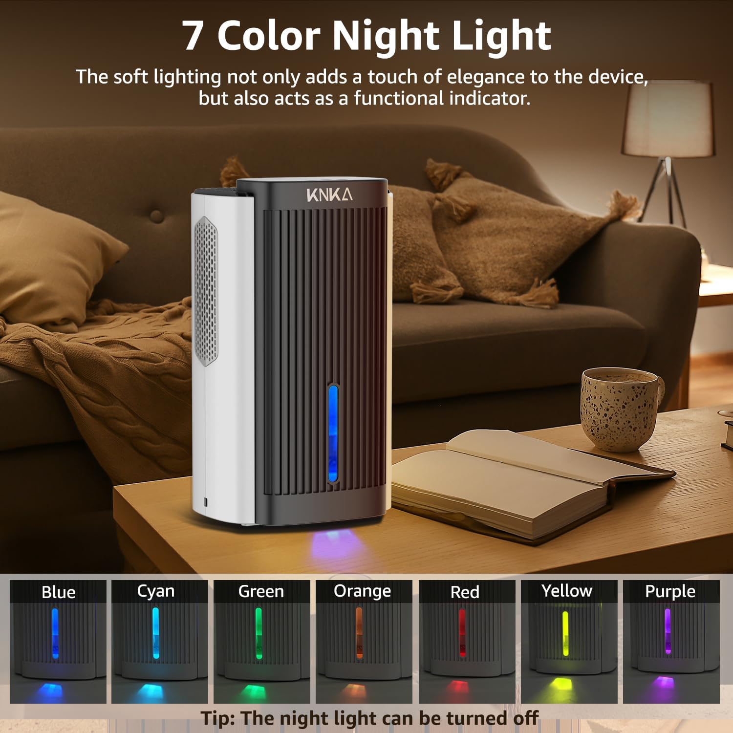 KNKA Dehumidifier,75 OZ Water Tank, (800 sq. ft) Quiet Dehumidifier for Basement, Bathroom, RV, Closet, Bedroom with Auto Shut Off, Sleep Mode,7 Colors LED Light, Dehumidifiers for Home (White/Black)