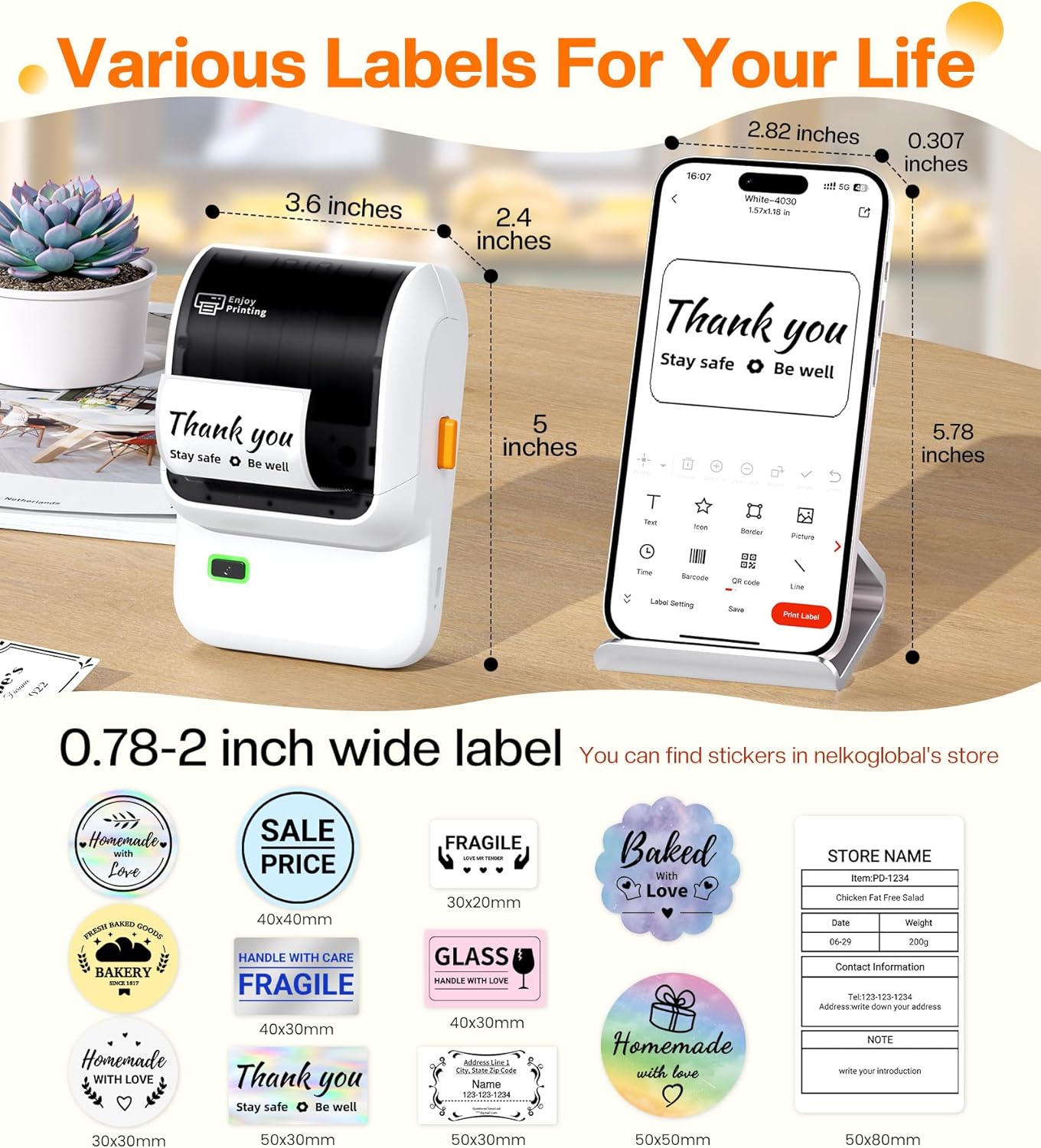 Lightweight and easy to carry, this label maker is ideal for homes, kitchens, offices, classrooms, and small businesses that need reliable, on-demand labeling in a compact format.