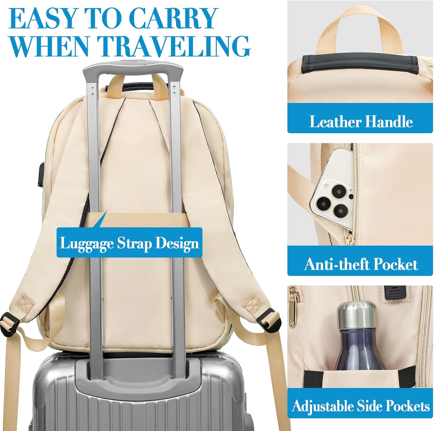 • Anti-Theft Pockets & Luggage Strap: This work travel backpack for women has an embeddable luggage strap that slides easily over your luggage/suitcase handle to relieve your back and shoulder pressure during use. The hidden anti-theft pocket on the back of the backpack for women can protect your smart phone, wallet, passport, other valuables from being lost for all basic daily needs for school, college, work, travel, hiking, business trips.