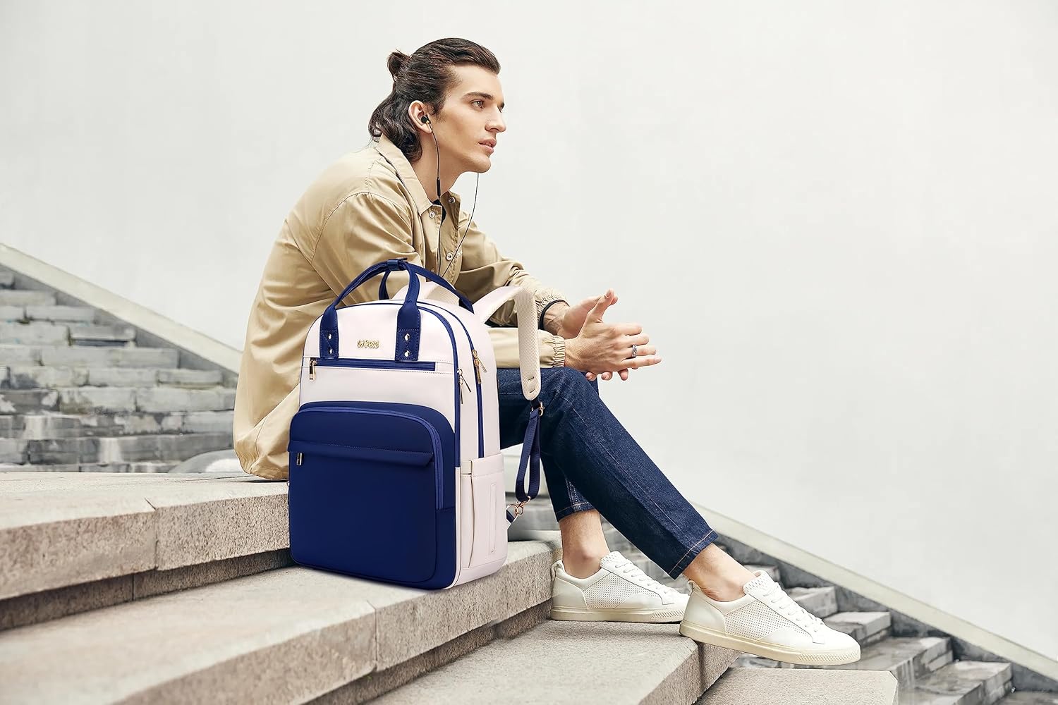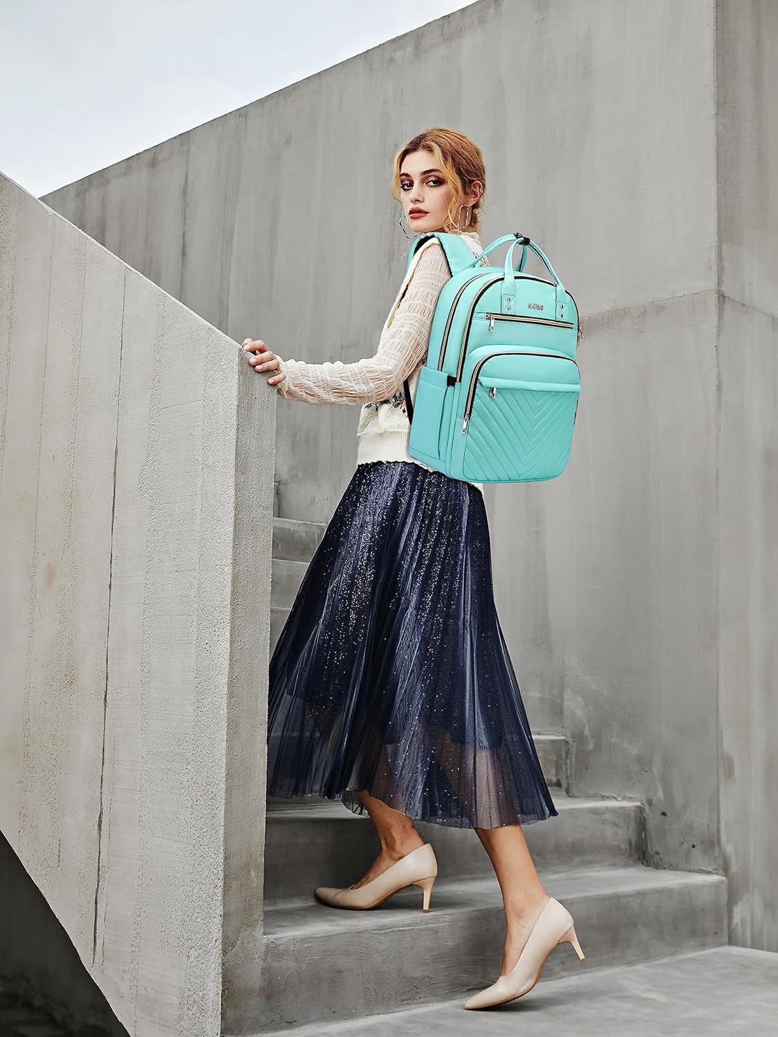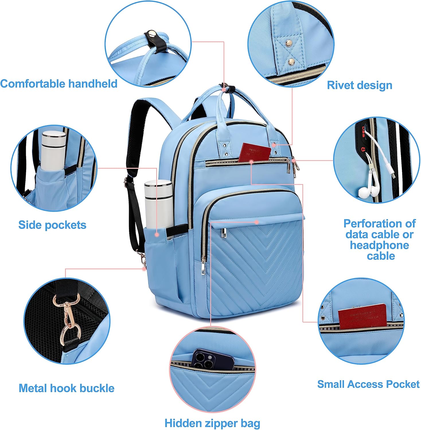 Laptop Backpack for Women Men, Water Resistant Travel Work Backpacks Purse Stylish College Business Teacher Nurse Computer Bag, Fits 17.3" Laptop Light Blue