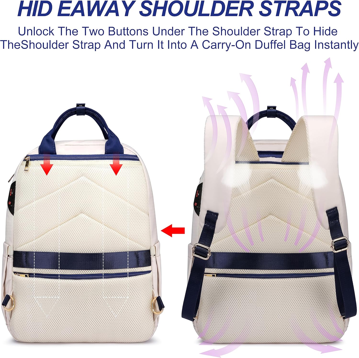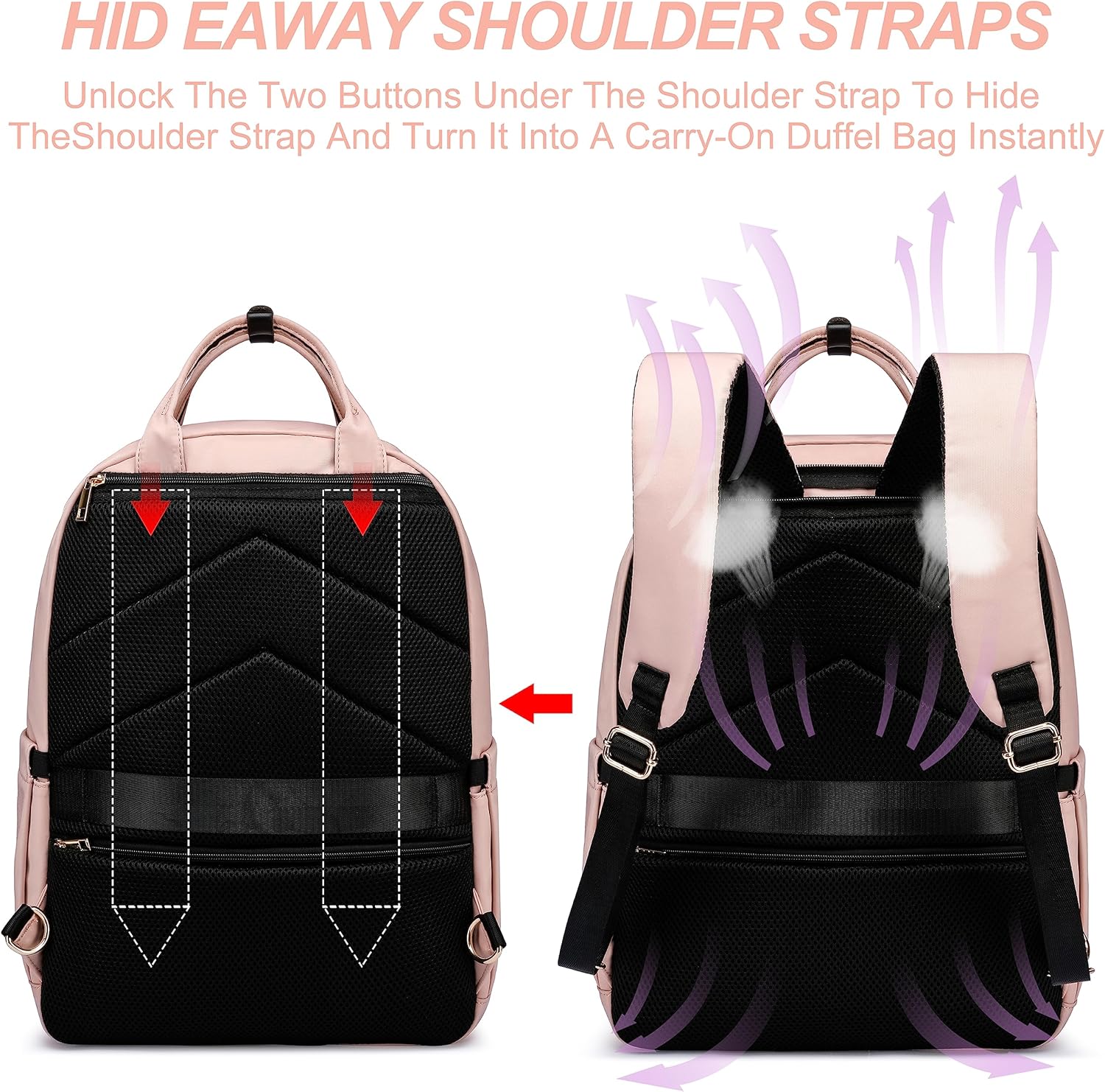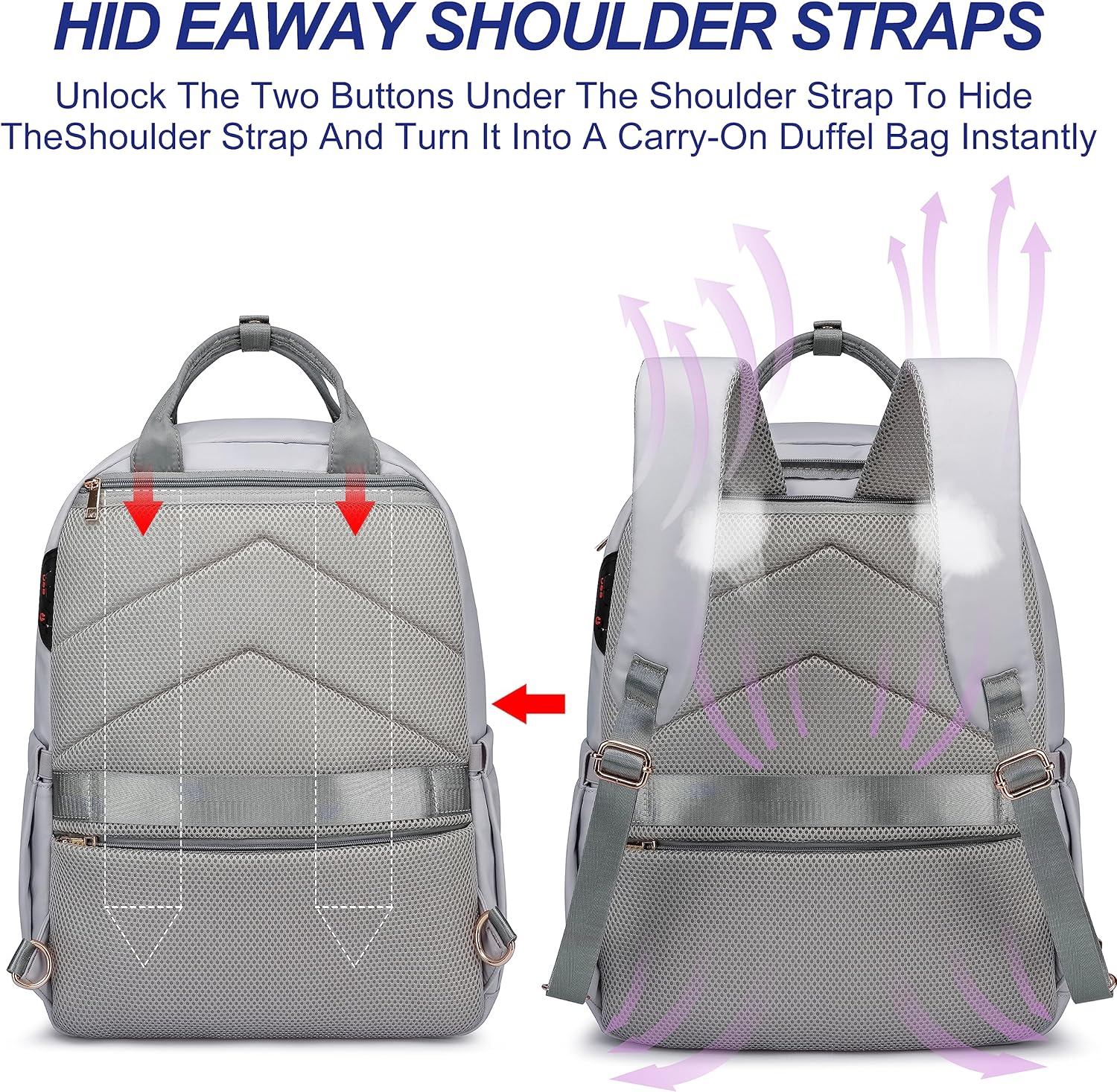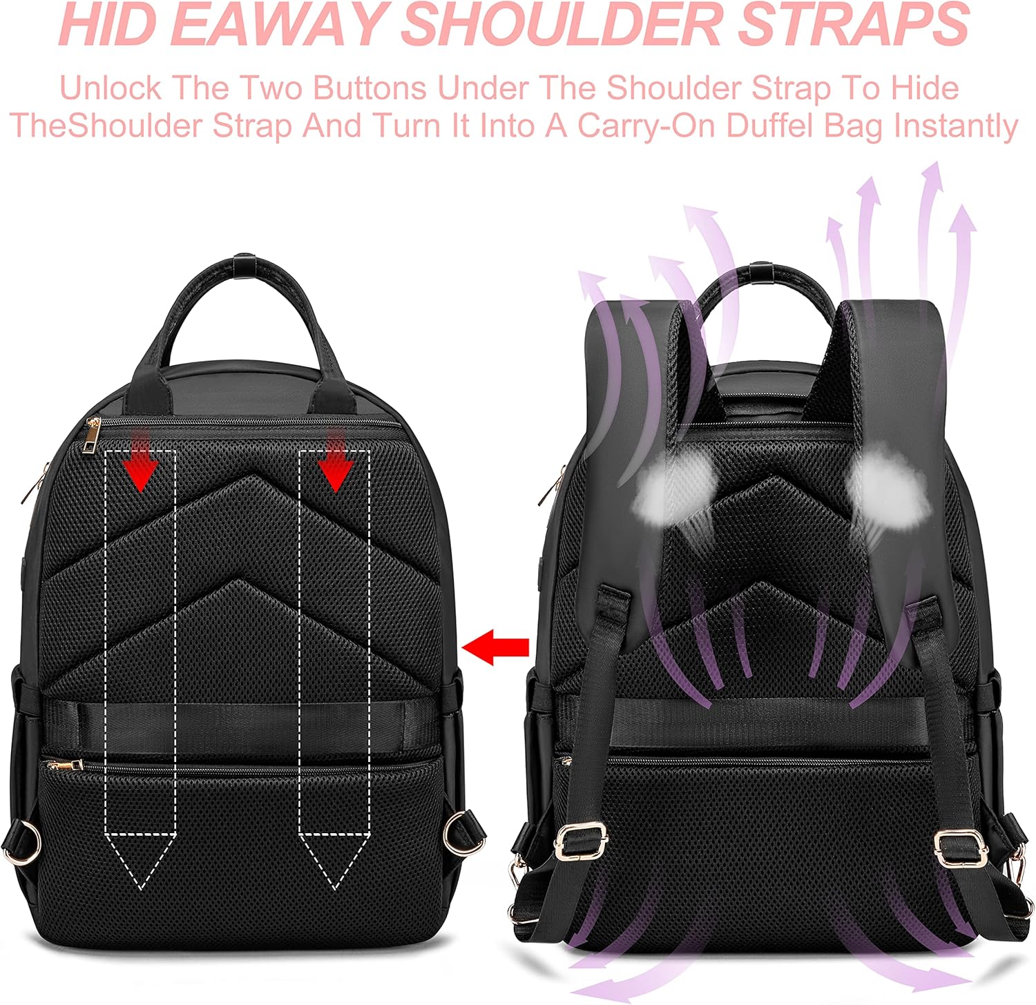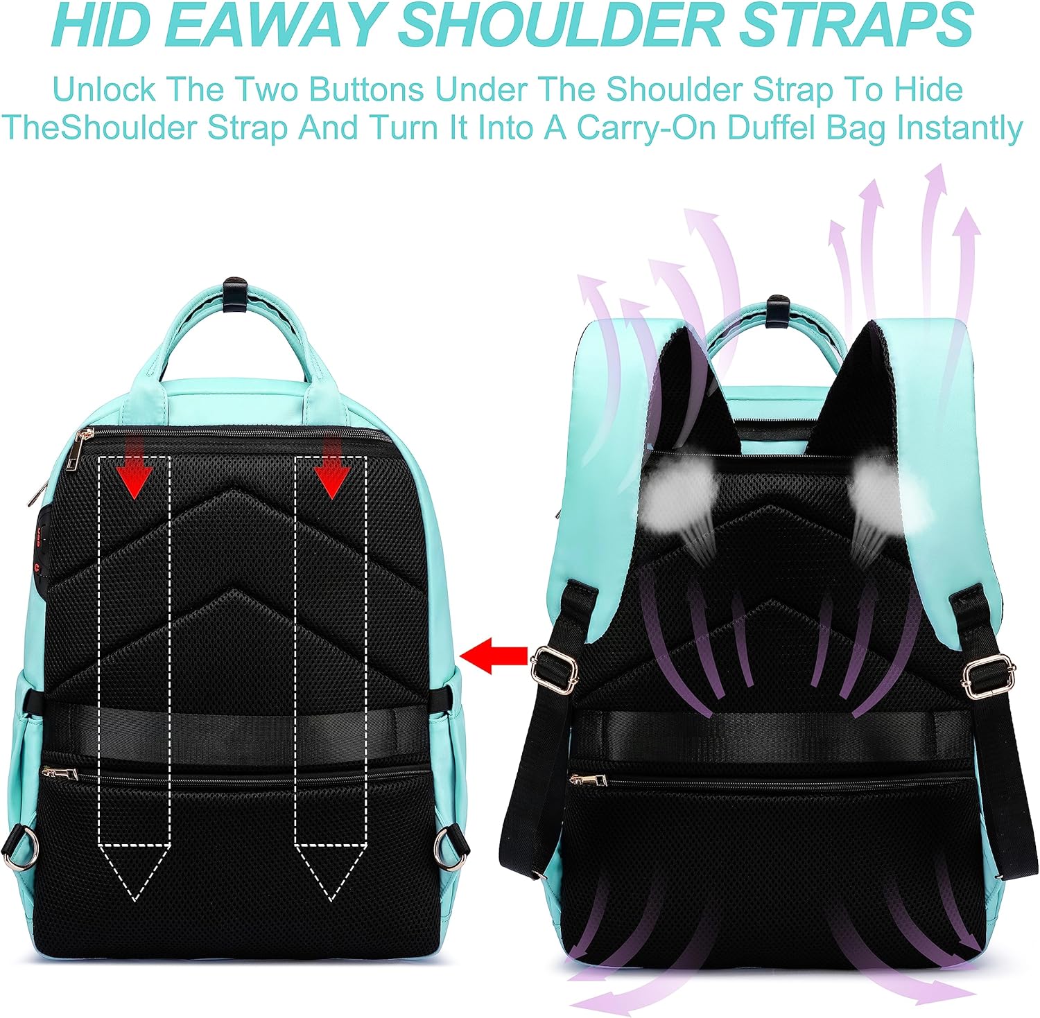 • CONVERTIBLE DESIGN: Waterproof bagpack is designed with hideaway padded shoulder straps which can be easily stored away in zippered back panel, transforming this vacation backpack from carry-on duffel to briefcase style and provide you a more flexible carrying experience.