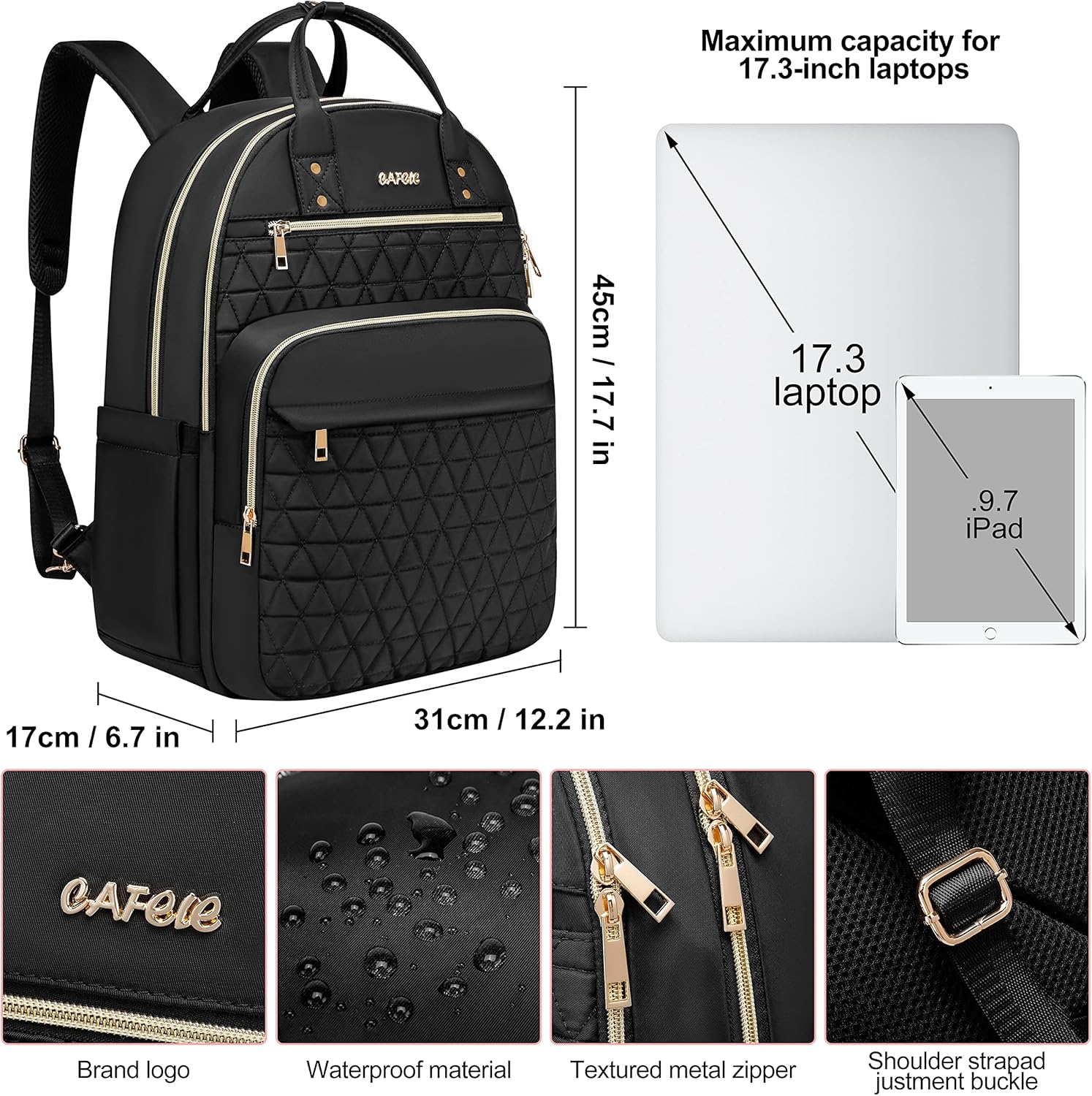 • 17.3 Inch Larger Capacity & Multi Organized Pockets:Dimension-12.2"L x 6.7"W x 17.7"H(airline approved), Weight: 1.88 lbs.30L large capacity, 5 compartments and 20+ pockets,Ample pockets keep your travel items organized. Fits up to 17.3" laptop.