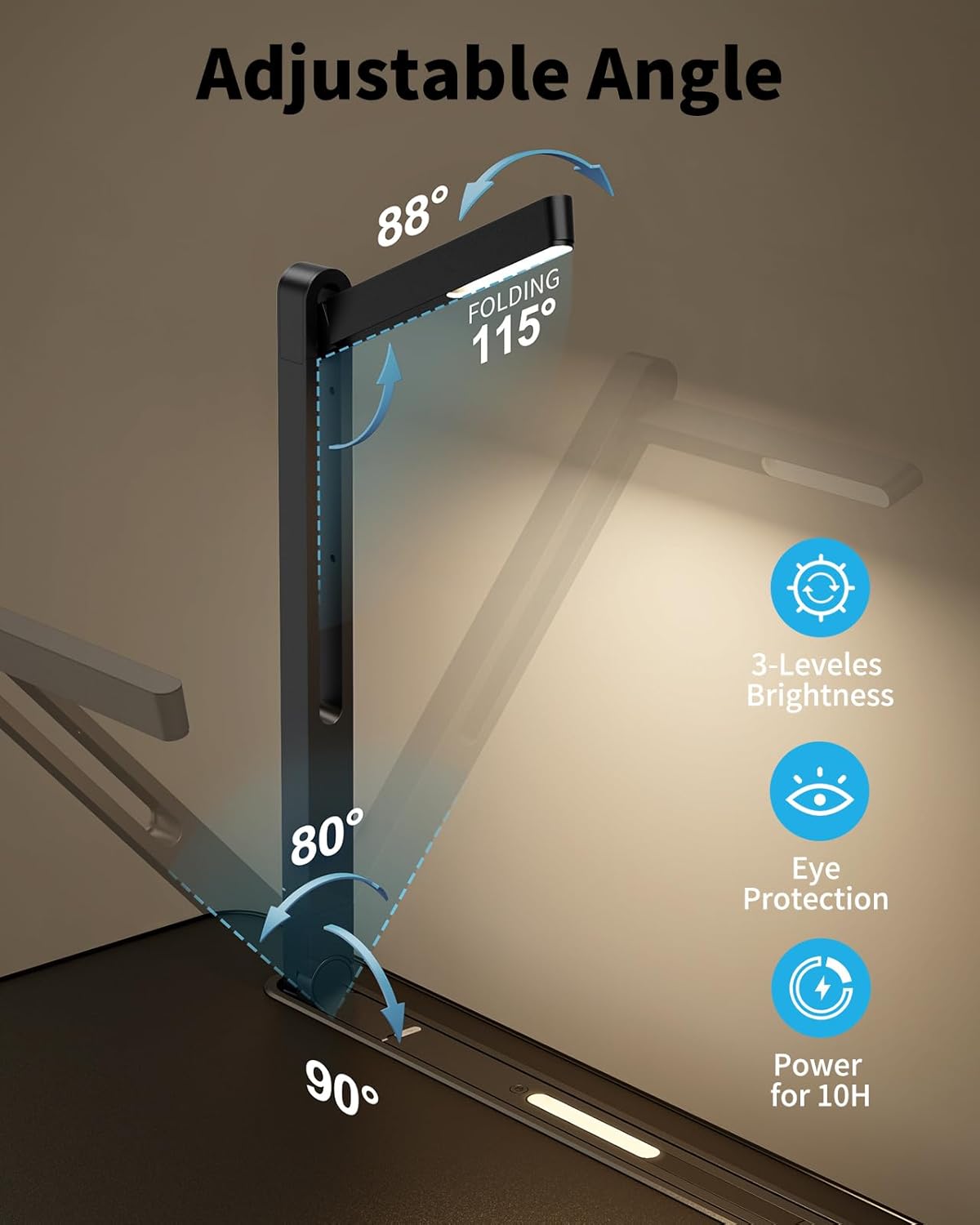 3-Leveles Brightness & Adjustable Angle Lamp: The LED lamp has three brightness levels and four-axis angle adjustment, providing illumination for your work, reading, writing, studying, entertainment, and other needs. The foldable LED lamp has a power of 10 hours and can be charged once and the 4000K light protects your eyes.
