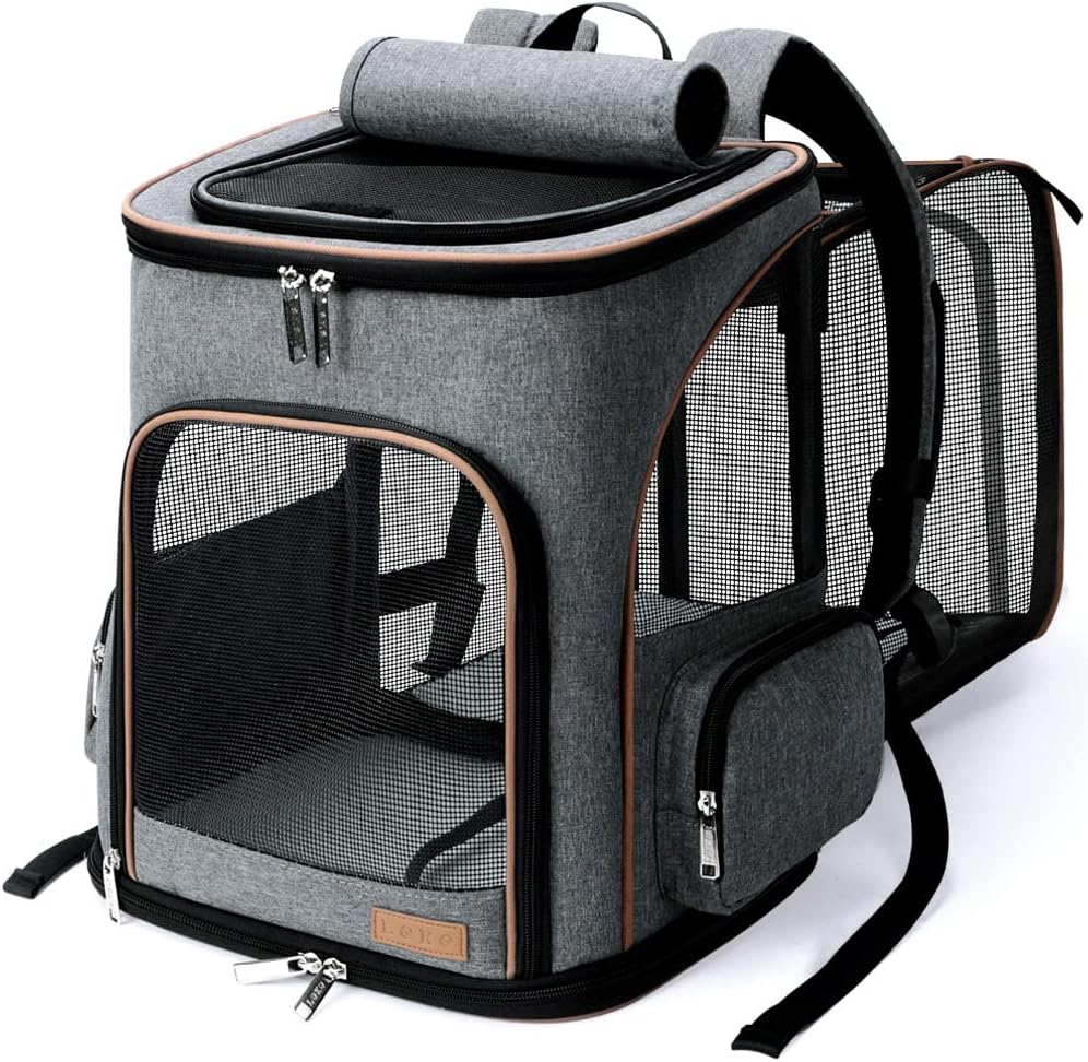 Lekesky Cat Backpack Expandable Dog Carrier Backpack Airline Approved Pet Backpack Carrier for Cats, Small Dogs, Puppies Under 13 Lbs, Grey