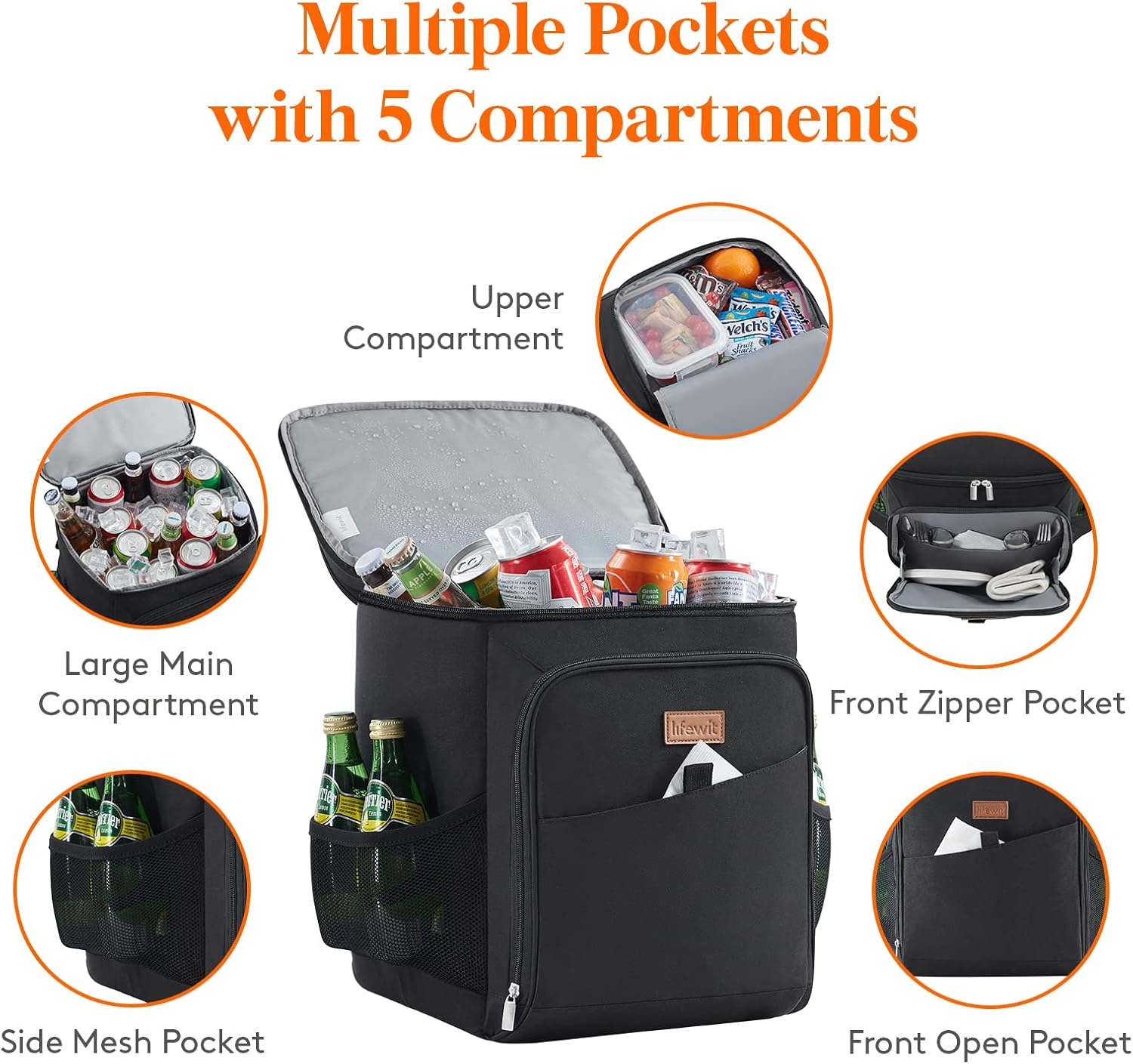 Lifewit 26L 34-Can Insulated Cooler Backpack Cool Bag, Large Picnic Bag Leakproof Portable Fridge Soft Food Cooler Box for Men Women for Outdoor/Picnic/Beach/BBQ/Camping/Travel/FamilyPL17-B07KKCQP9L