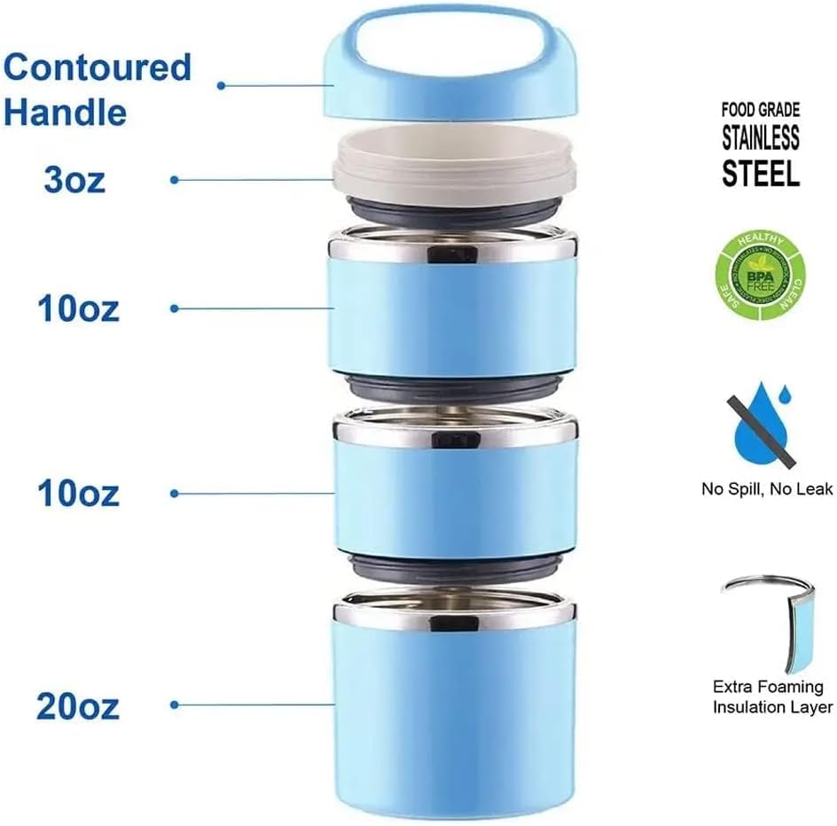 •  Versatile Design - It can be used for hot food such as soup, fried rice, etc which will keep warm for 2-4 hours or cold food, such as salad, pasta, fruit, etc. You can use 1 layer, 2 layers or all the 3 layers for different food combinations.