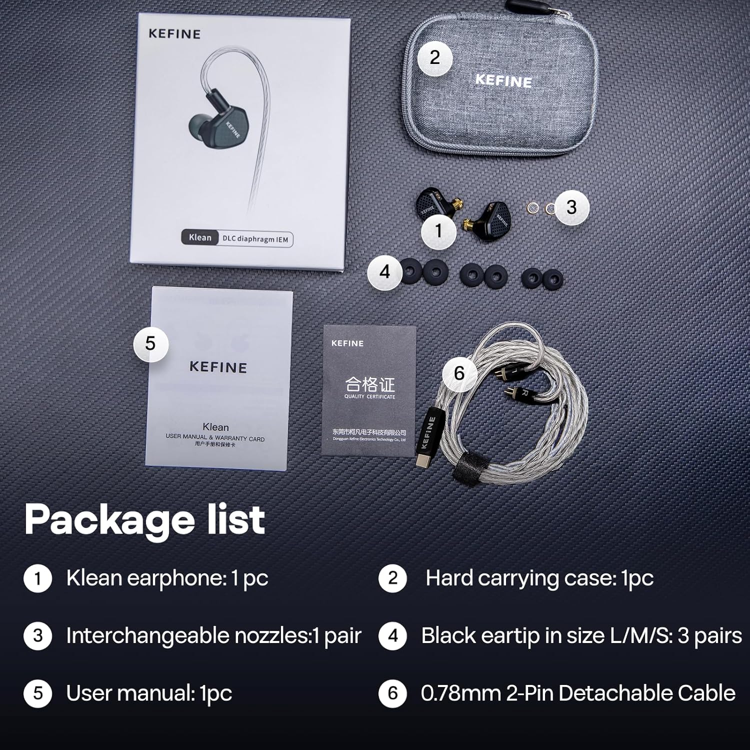 • ย ๐’๐ฎ๐ฉ๐ž๐ซ๐ข๐จ๐ซ ๐’๐จ๐ฎ๐ง๐ ๐๐ฎ๐š๐ฅ๐ข๐ญ๐ฒ ๐ฐ๐ข๐ญ๐ก ๐ƒ๐‹๐‚ ๐“๐ž๐œ๐ก๐ง๐จ๐ฅ๐จ๐ ๐ฒ:The Kefine Klean iem earphones utilize a state-of-the-art 10mm dynamic driver featuring a diaphragm made from diamond-like carbon (DLC). This advanced material not only ensures remarkable clarity and detail but also extends high frequencies, providing a transparent and clean sound signature. The natural and musical audio profile includes powerful bass, warm mids, and smooth treble.
