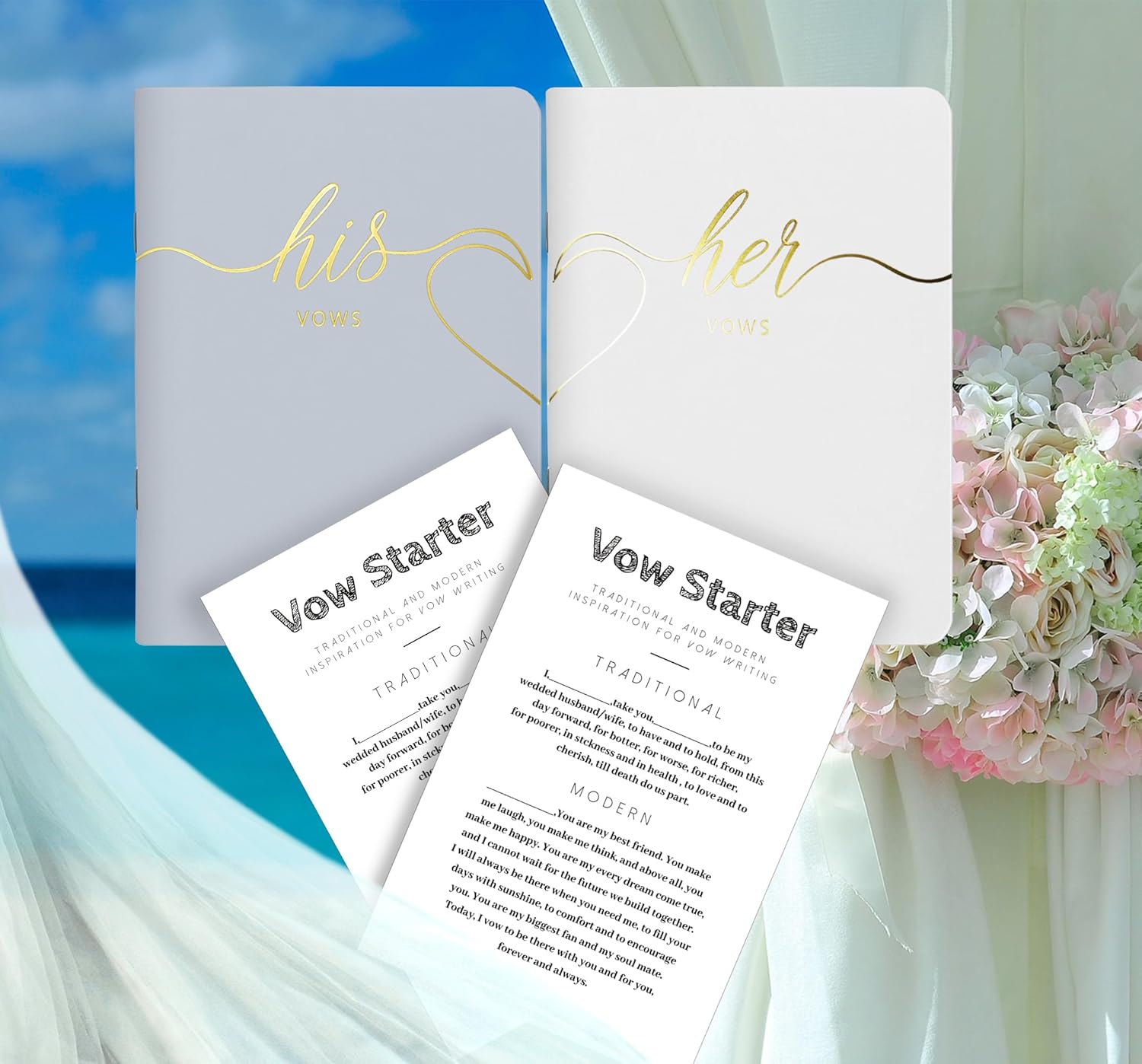 • Set Of 2 Modern Vow Books For Wedding: Two adorable vow books - his and hers - come in practical 5.5x4” pocket-size, especially created for brides & grooms’ handwritten vows and to add even more love to the most unforgettable, tear-jerking moments of the ceremony