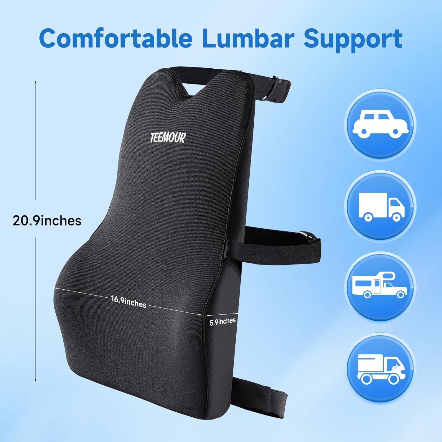 • ✔INSTANT LUMBAR SUPPOT PILLOW:Teemour car pillow are made of High density memory foam. Therefore, the chair cushion can provide comfy support all the time and never become flat as time passes during the day. Also, the quality memory foam inside absorbs shock during driving and perfectly fits the human spine curve and offers cushion & comfort to your waist no matter you sit or drive.