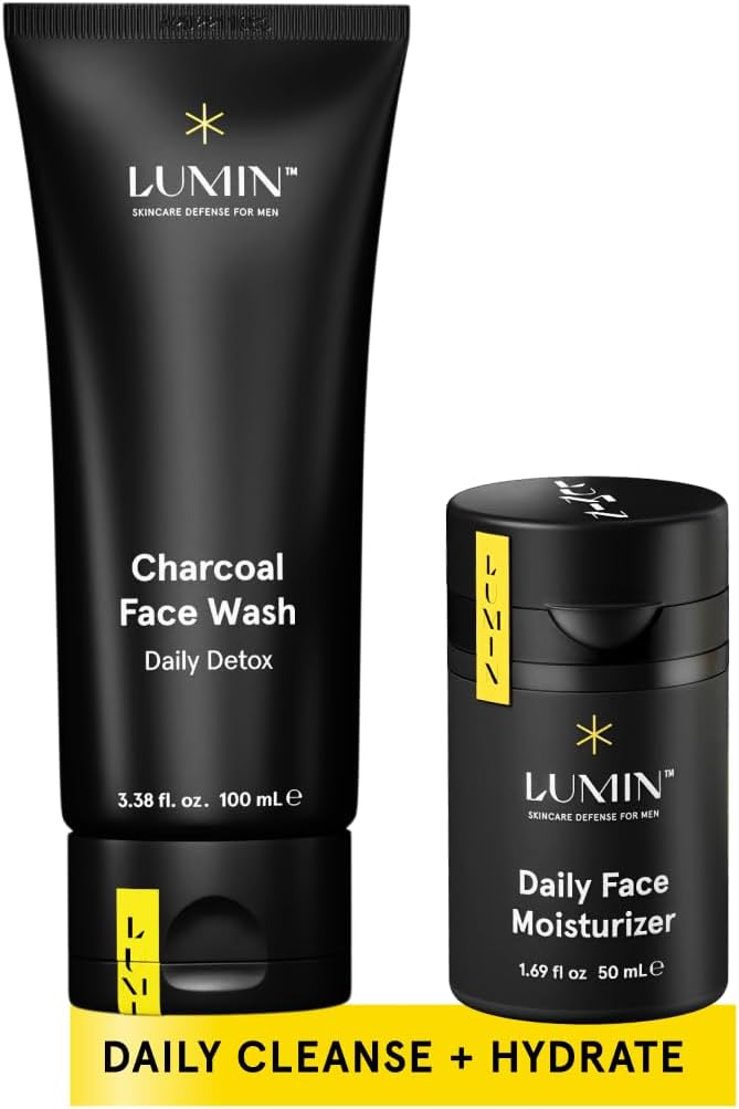 Lumin - Dynamic Duo - Skin Care kit for Men - Includes: Charcoal Face Wash Daily Detox & Daily Face Moisturizer,Suitable for all skin types, Daily Use, Two Month Supply