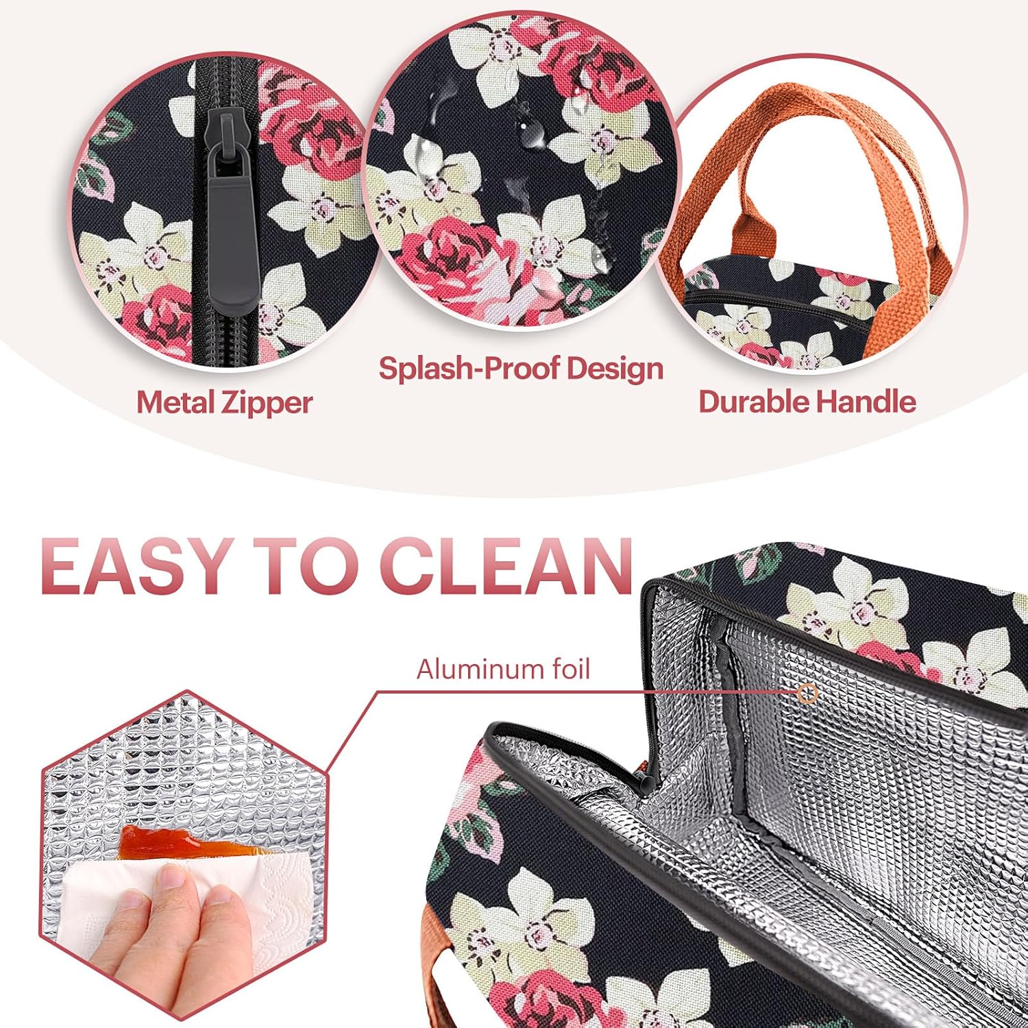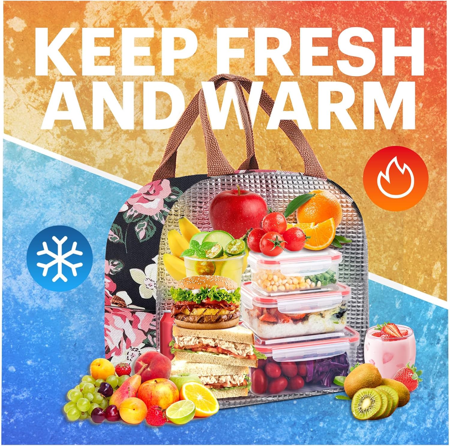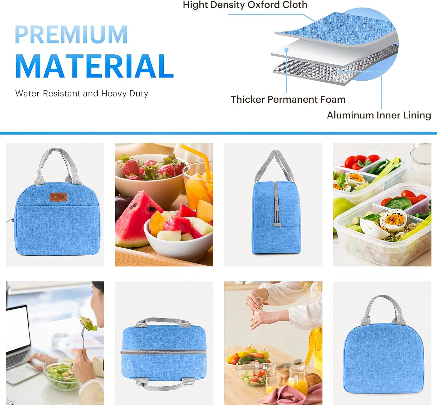 - ★PREMIUM & SAFE MATERIAL--This insulated lunch bag has a waterproof Oxford cloth surface layer that is tear-resistant and durable. The thick insulating foam middle layer keeps food cold, warm, or fresh for several hours. The aluminum foil lining is easy to clean and keeps the inside odour-free. Made with BPA-free materials, this lunch tote ensures you have healthy and safe food.
