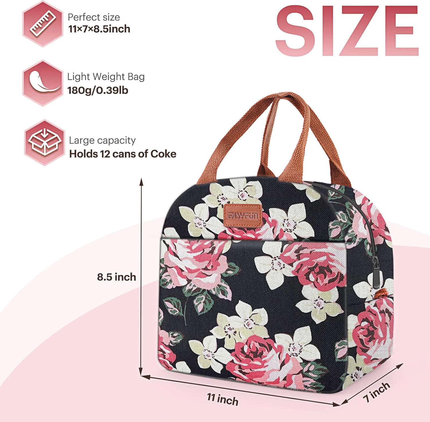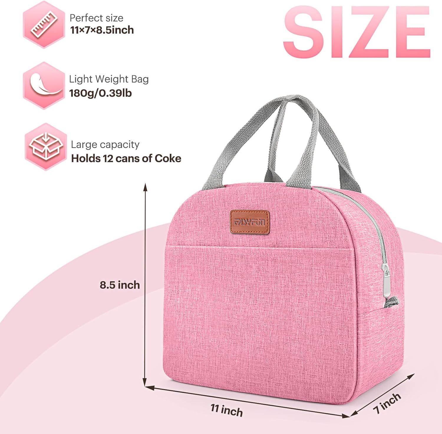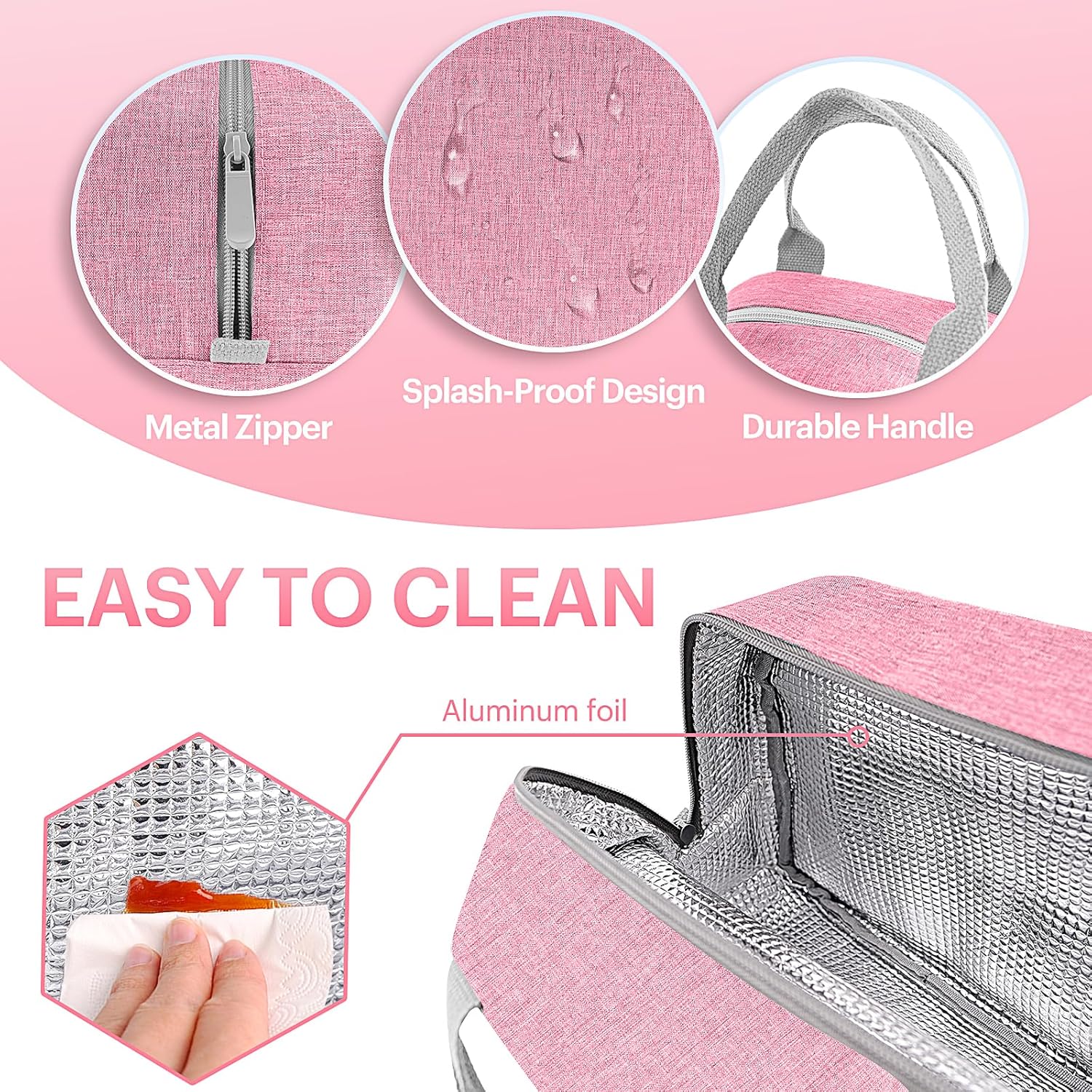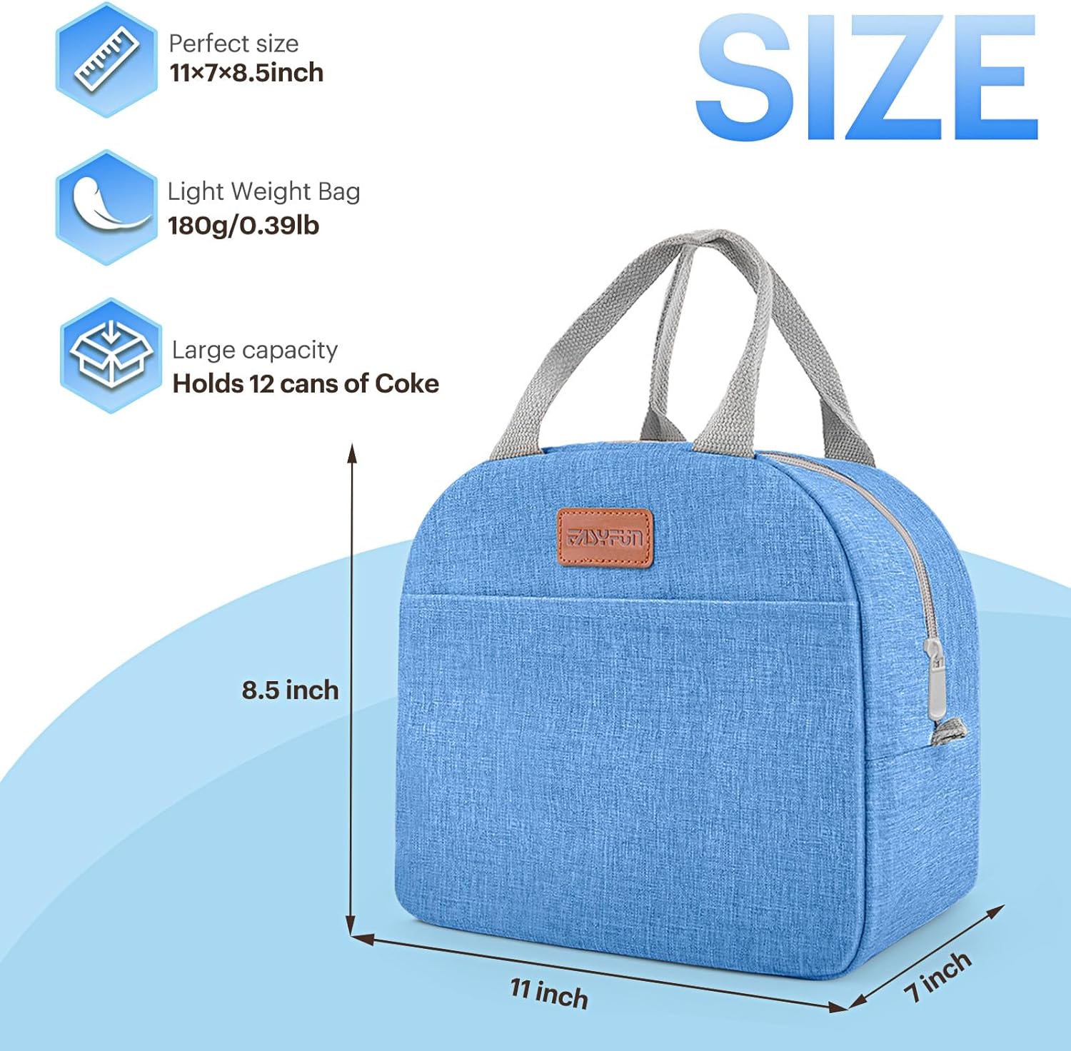 - ★PREMIUM & SAFE MATERIAL--This insulated lunch bag has a waterproof Oxford cloth surface layer that is tear-resistant and durable. The thick insulating foam middle layer keeps food cold, warm, or fresh for several hours. The aluminum foil lining is easy to clean and keeps the inside odour-free. Made with BPA-free materials, this lunch tote ensures you have healthy and safe food.