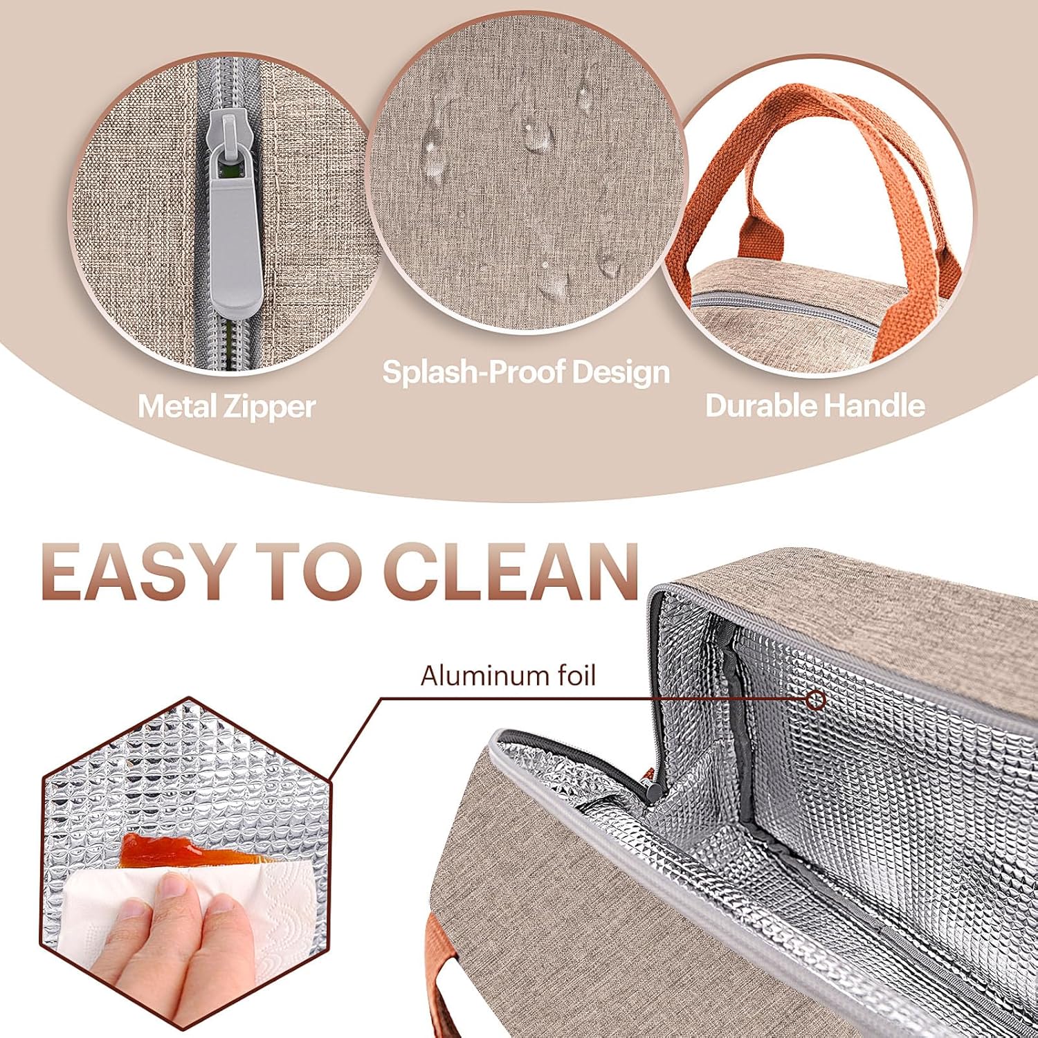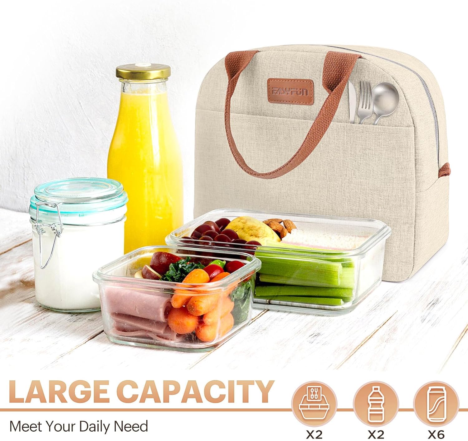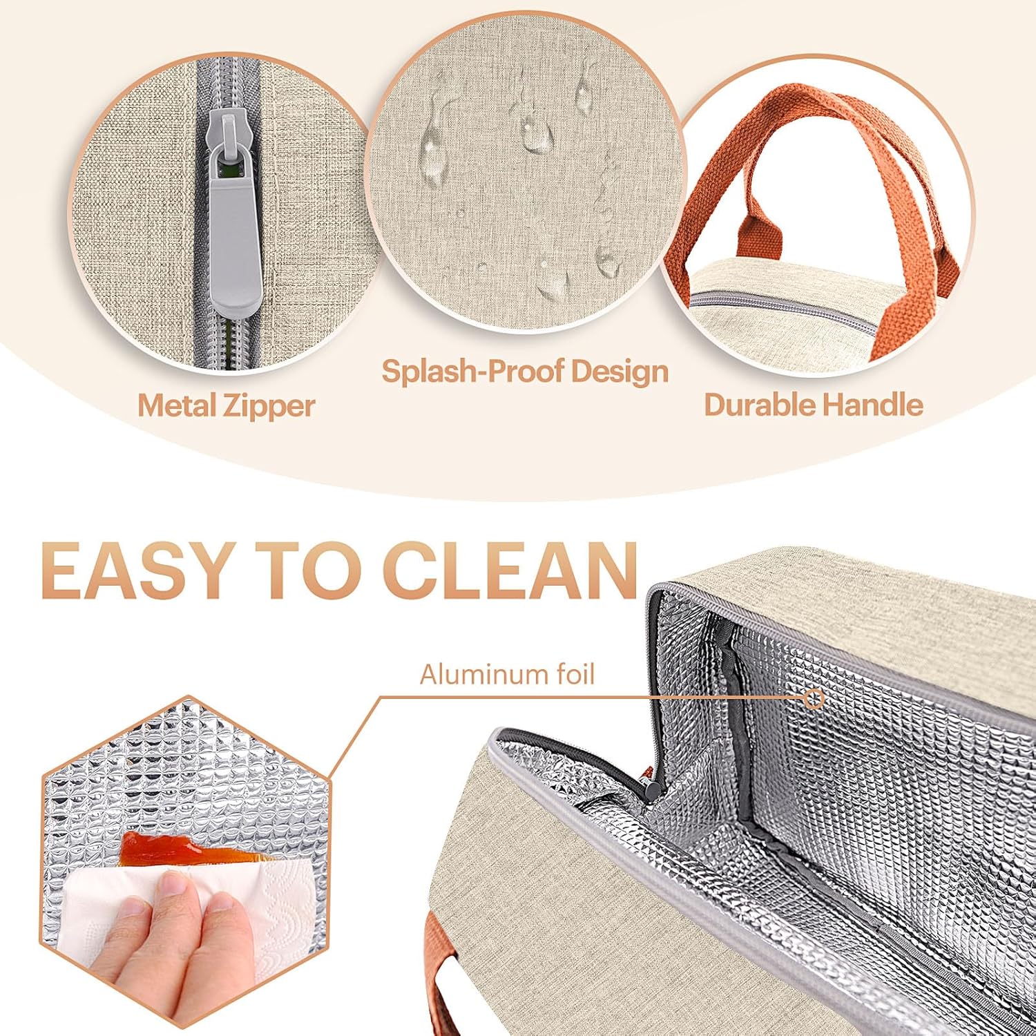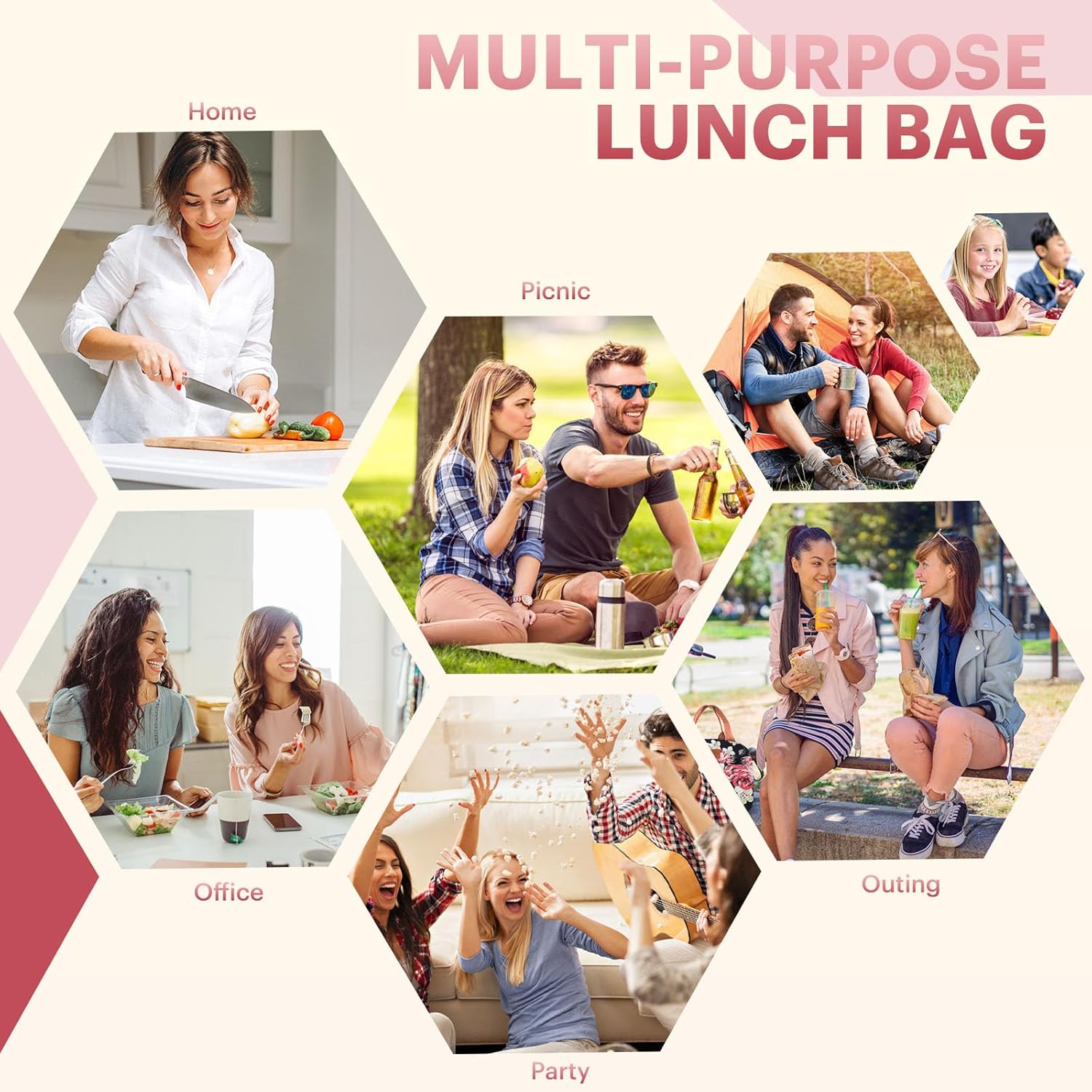 - ★MULTIFUNCTIONAL USE -- Our lunch tote is designed with versatility in mind. Featuring a heavy-duty handle made of durable linen material and advanced sewing technology, it can easily hold lunch boxes, fruits, and drinks all at once. Whether you're at the office, enjoying a picnic, traveling, or camping, our lunch tote allows you to enjoy warm food and cold drinks with ease.
