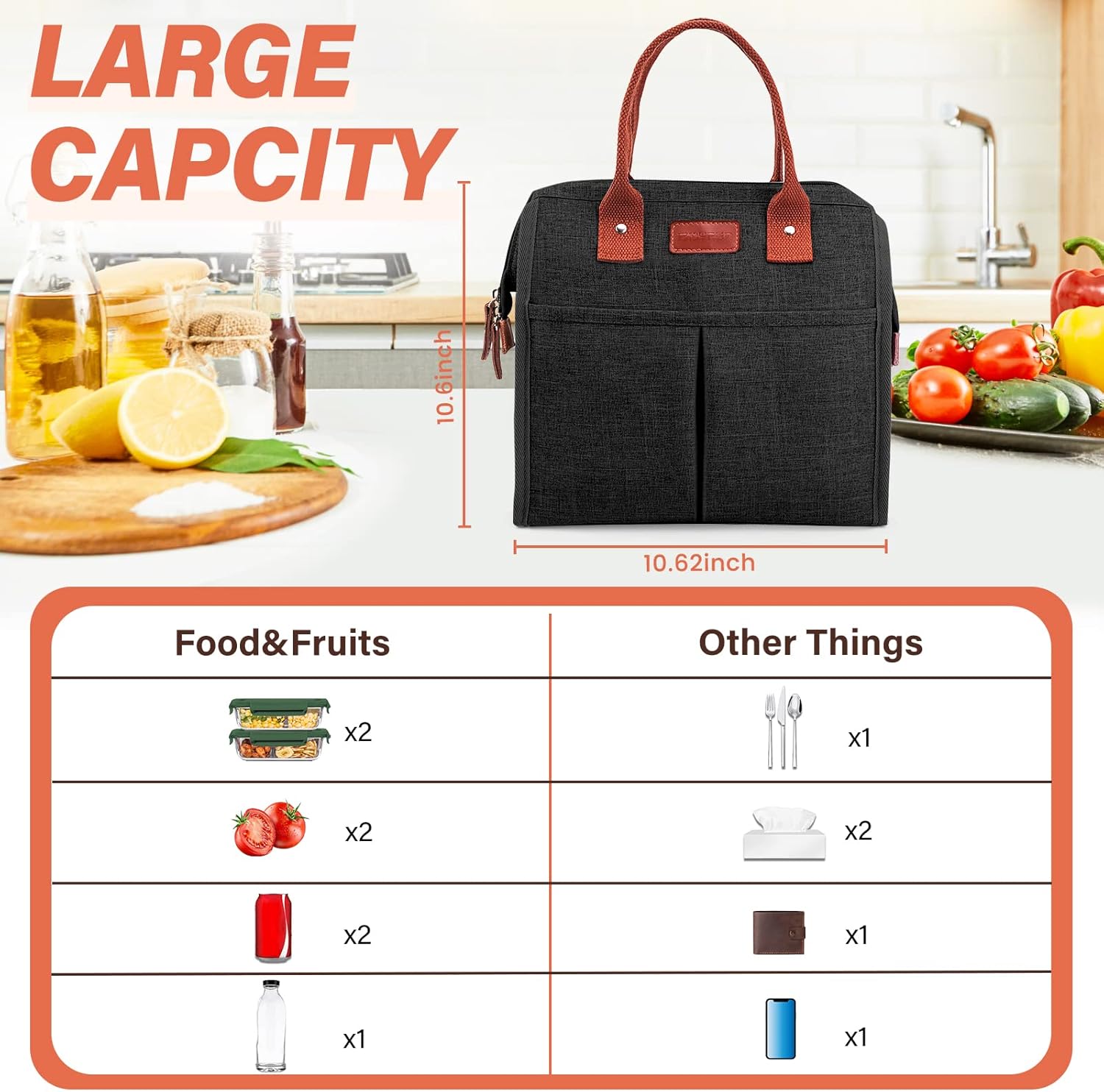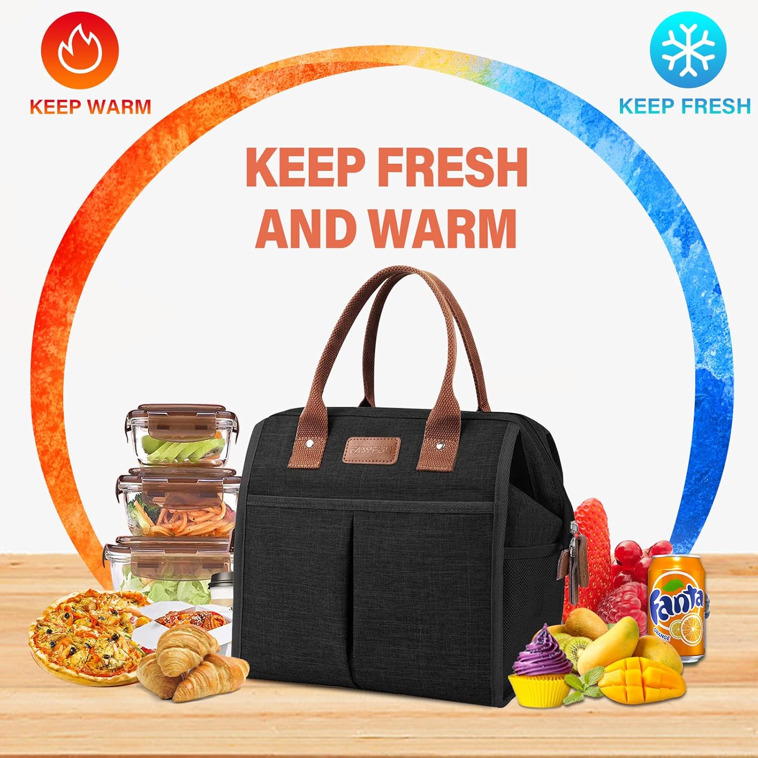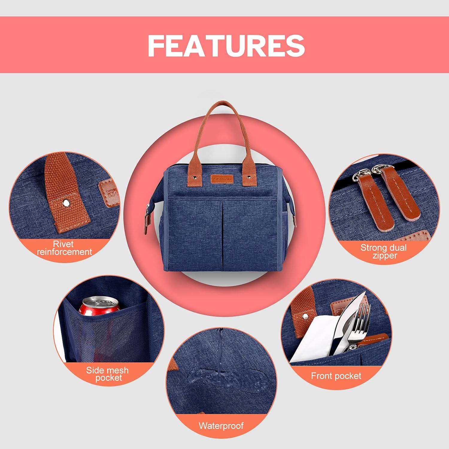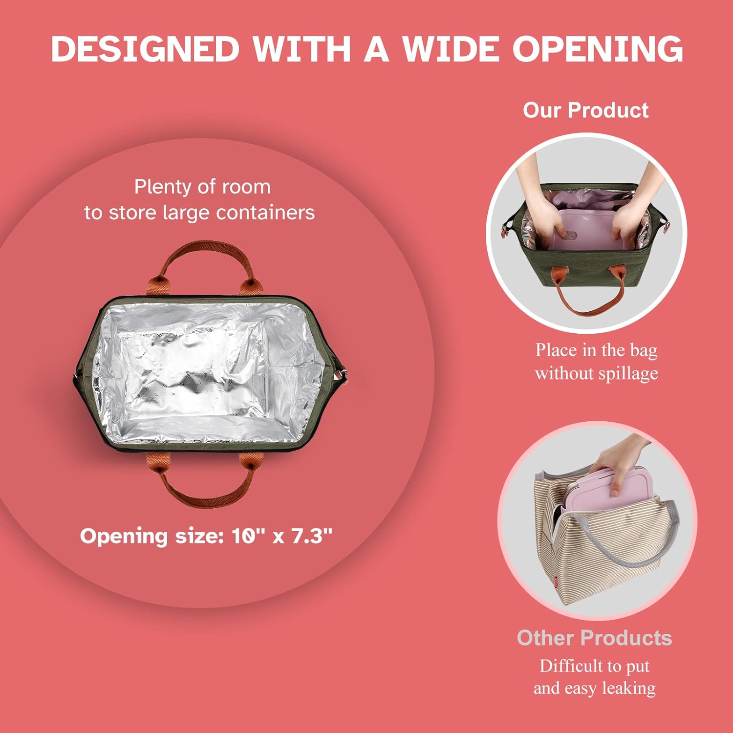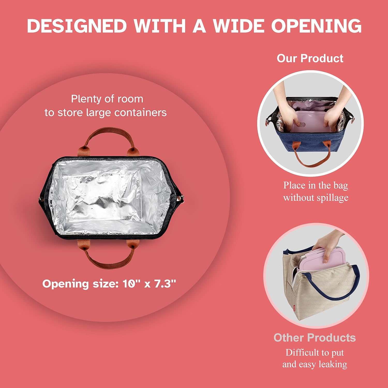 •  👜HUMANIZED STRUCTURE: Insulated lunch bag adopts opening design and dual zipper, there are metal wires on both sides of the opening to fix the opening, allowing you to easily put in/take out the lunch box, drink and food. The fashionable style design makes the lunch bag is ideal to be used for men and women.