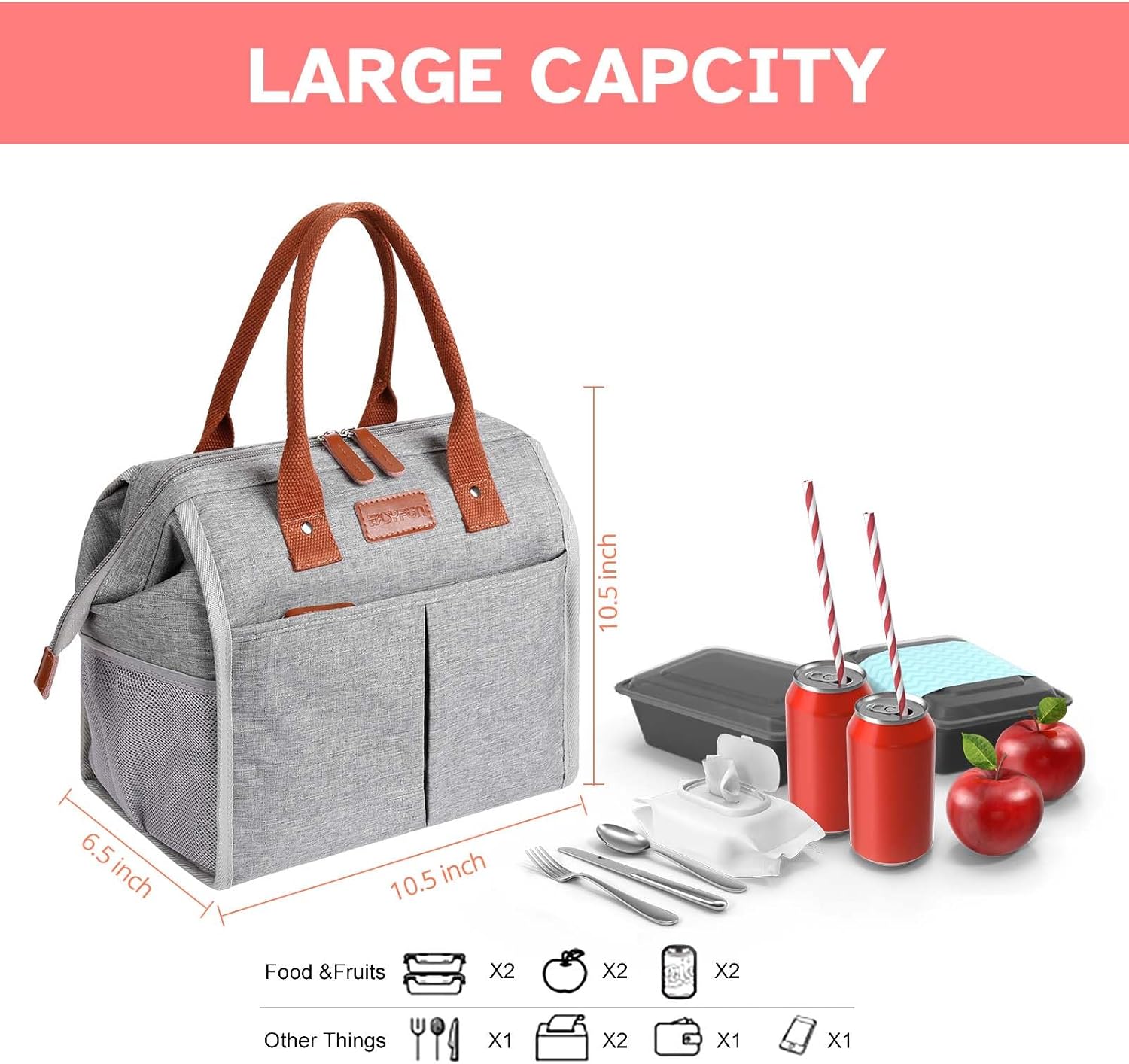Lunch Bag for Women & Men, Insulated Lunch Box Cooler Tote Bags, Adult Reusable Lunch Boxes with Water Resistant for Work, Travel and Picnic (Grey)