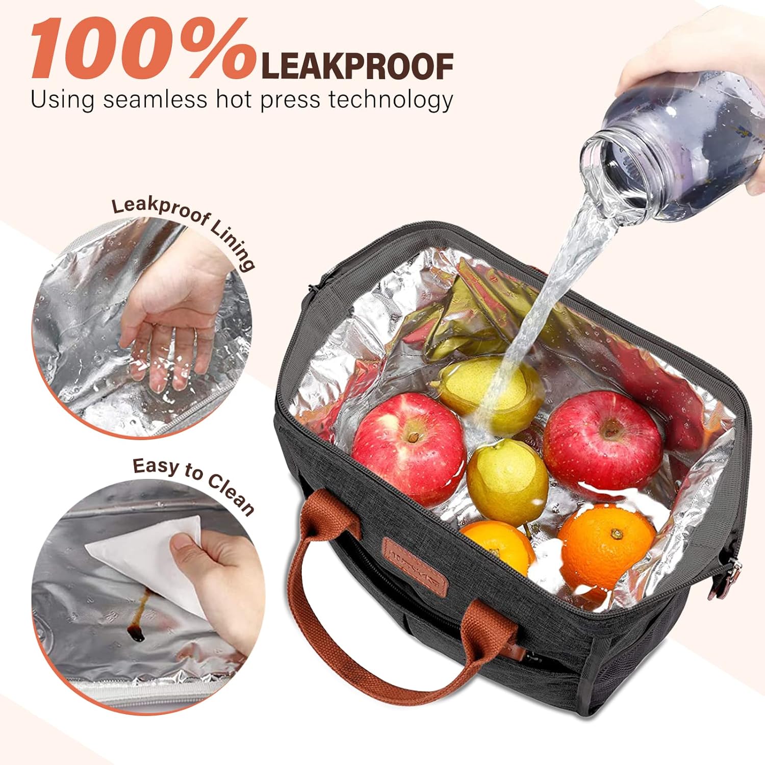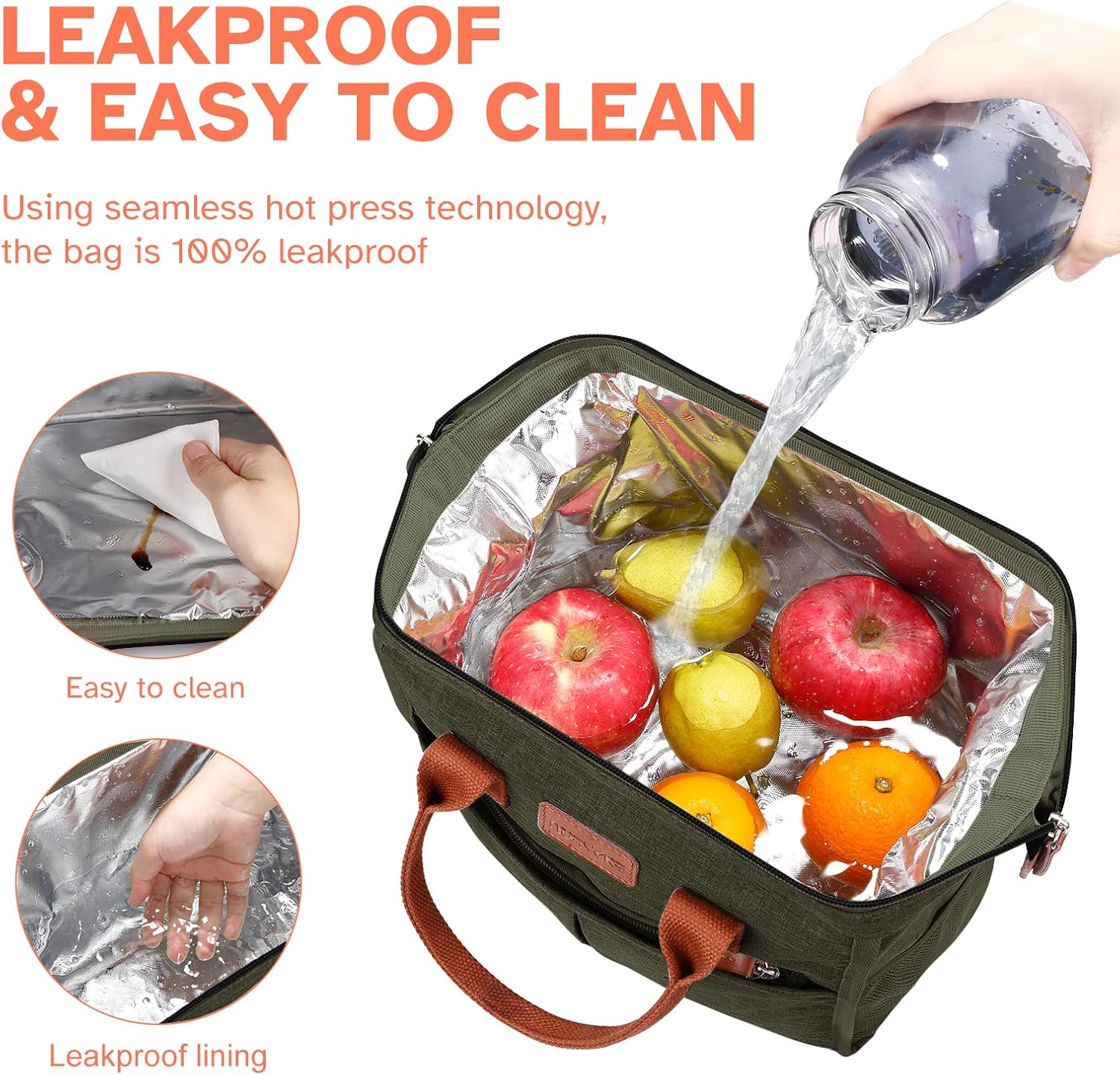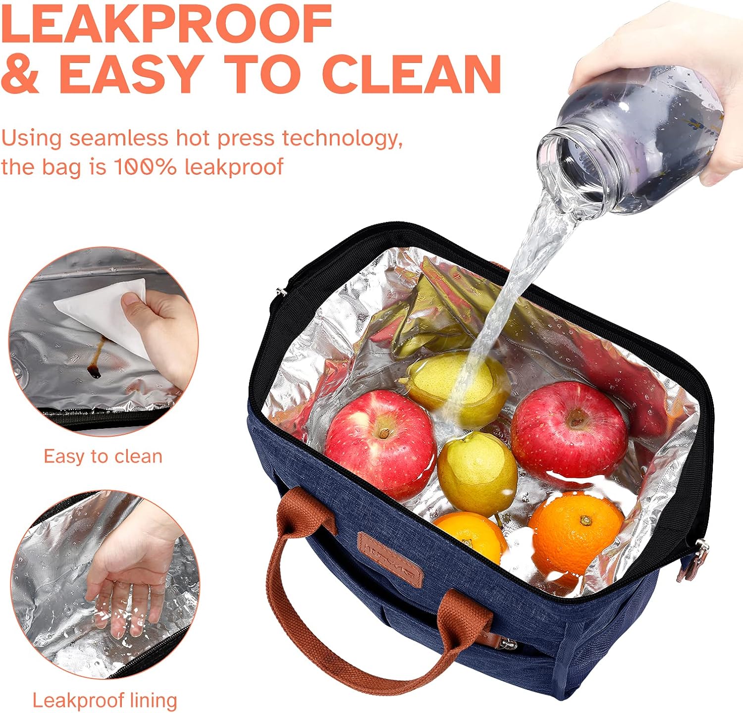 • 💧GREAT MATERIAL: The lunch bag has been upgraded, thick aluminium foil lining is seamless to enhance leakage prevention,easy to clean inside compartment; The thick insulating foam in the middle layer of the cooler bag can keep food cool, warm and fresh for a long time; The exterior uses Oxford cloth material, which is waterproof and wear-resistant.