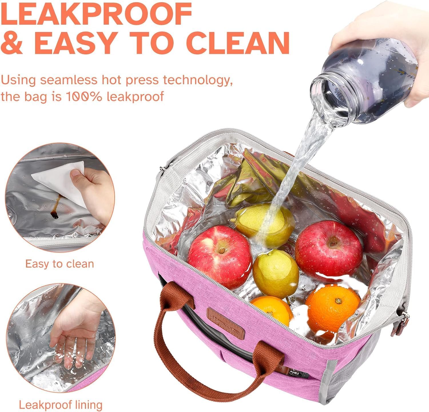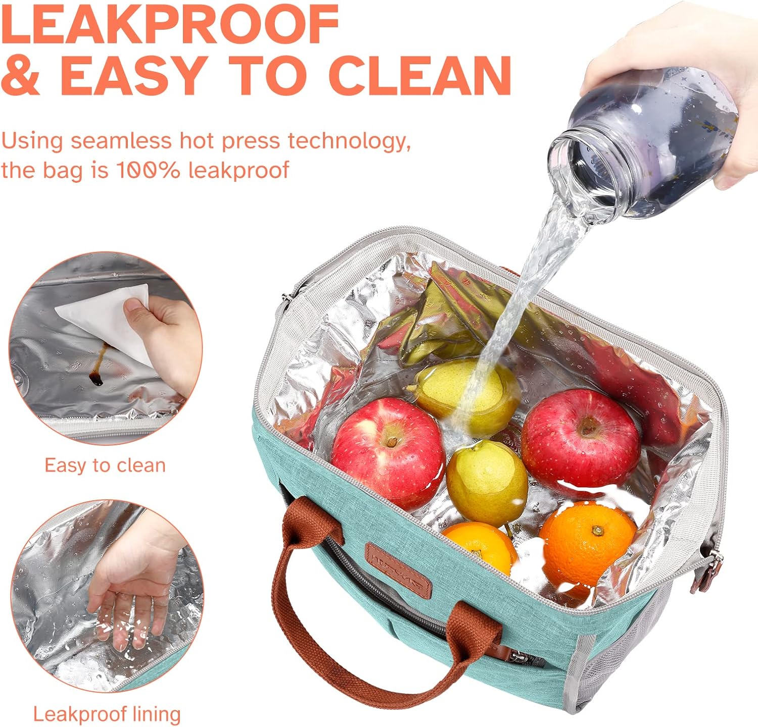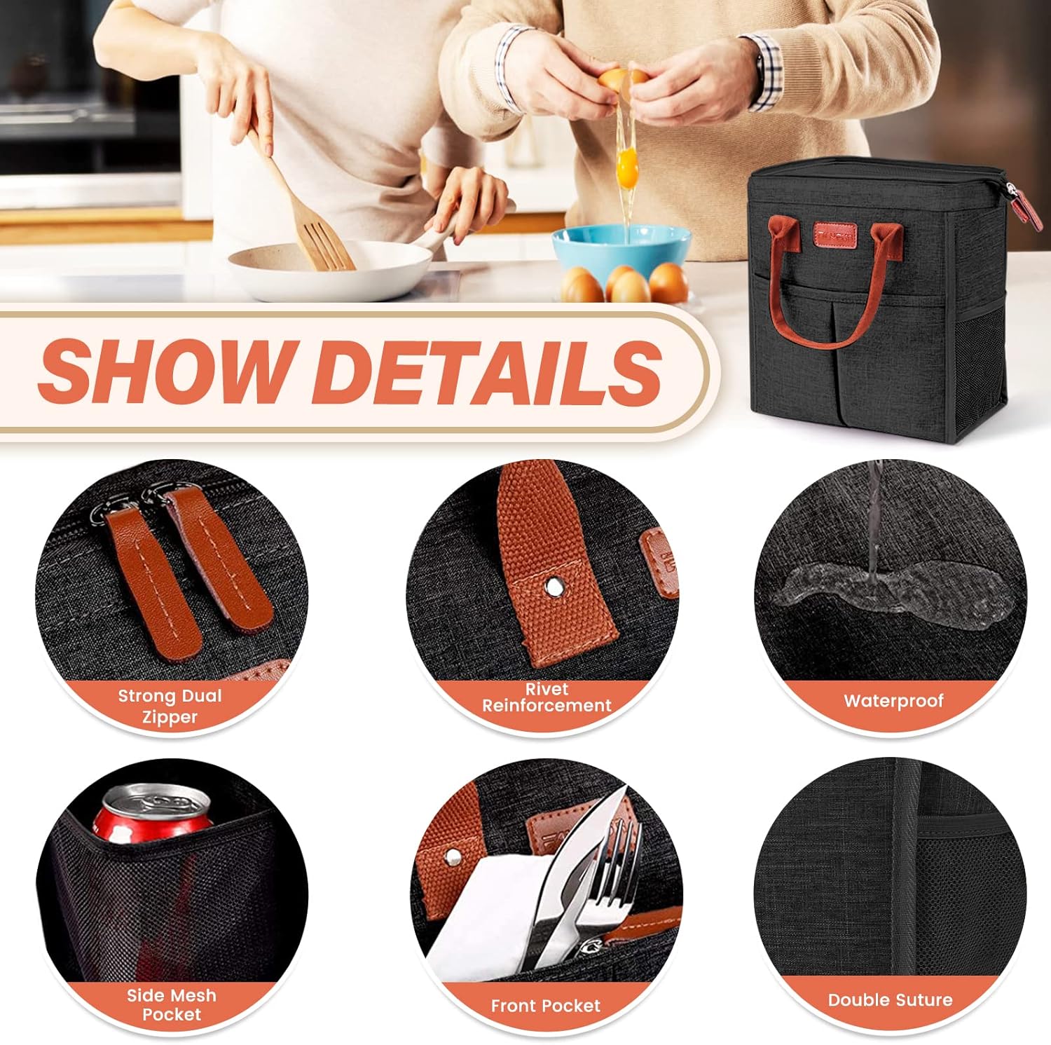 • 💧GREAT MATERIAL: The lunch bag has been upgraded, thick aluminium foil lining is seamless to enhance leakage prevention,easy to clean inside compartment; The thick insulating foam in the middle layer of the cooler bag can keep food cool, warm and fresh for a long time; The exterior uses Oxford cloth material, which is waterproof and wear-resistant.
