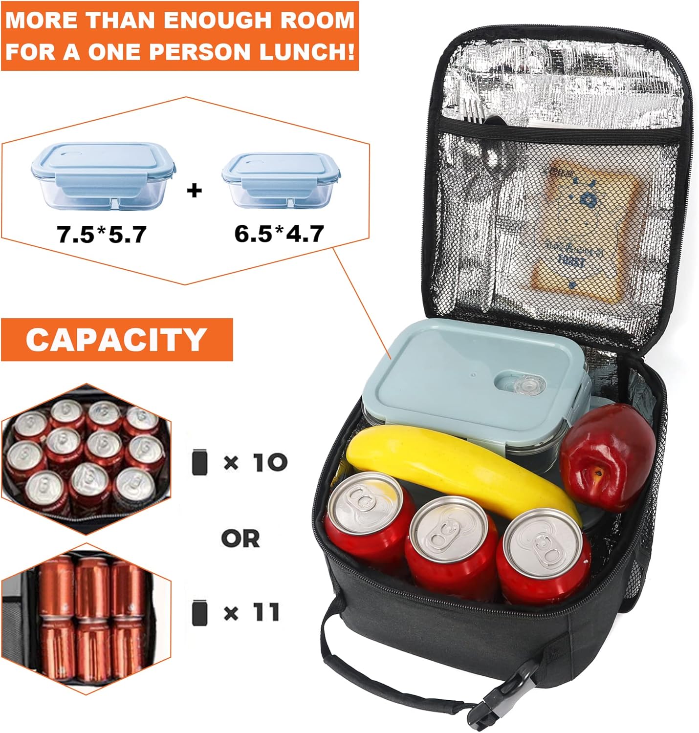 Lunch Box for Men Women Adults Small Lunch Bag for Office Work Picnic - Reusable Portable Lunchbox, Black