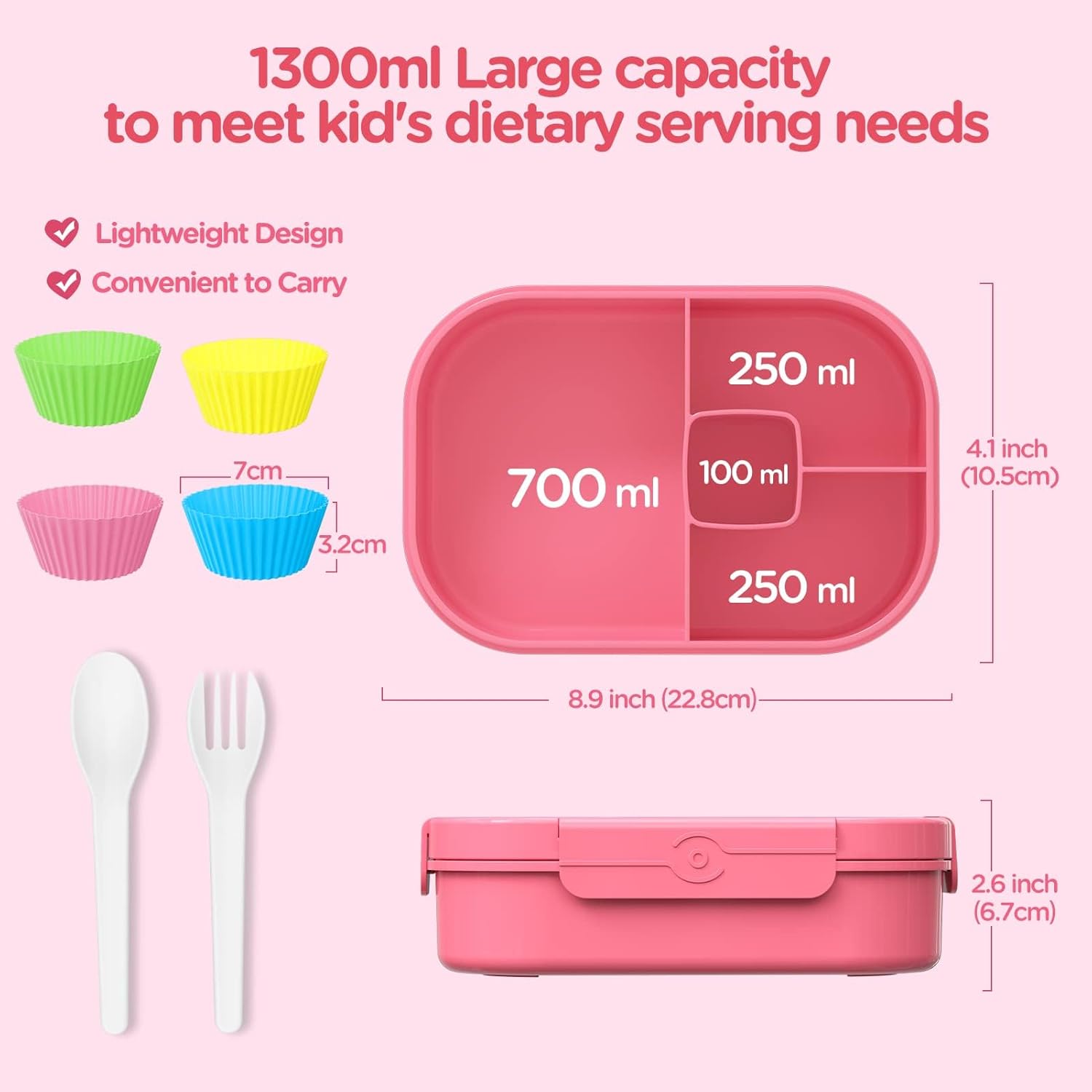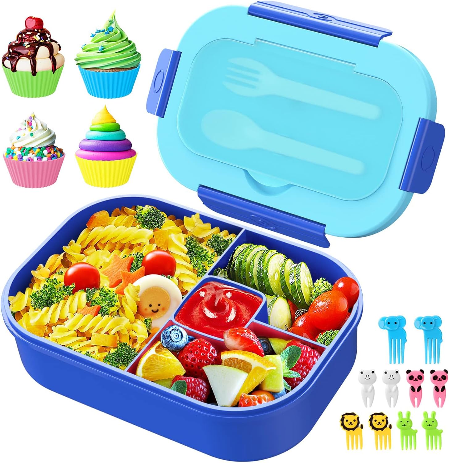 - Ideal School Lunch Box for Kids - bento box lunch containers come with cutlery and four practical compartments, ideal for satisfying a child's appetite and encouraging a healthy, balanced meal. Perfect for kids aged 5+ or adults watching their diet.