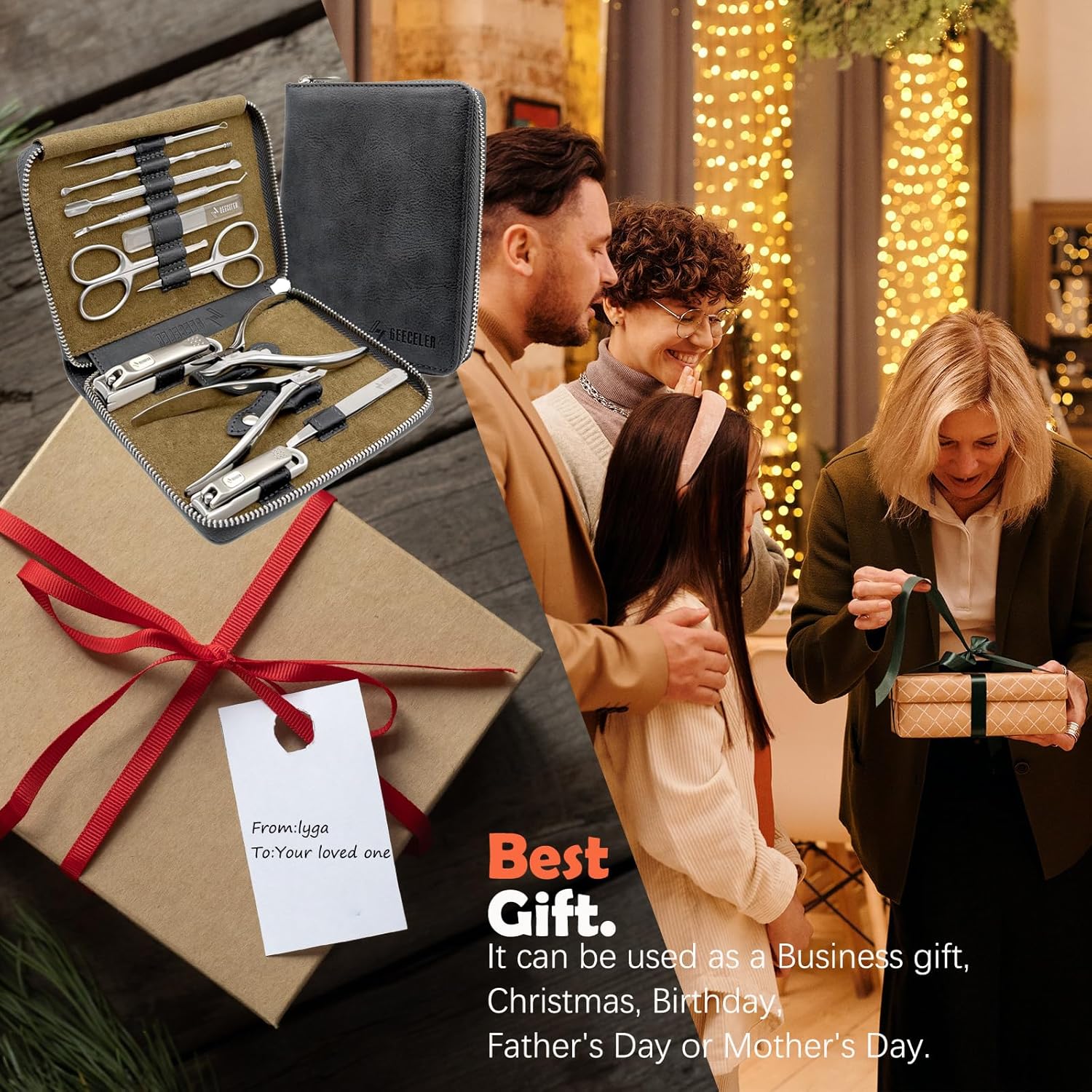 LYGA Nail Clipper Set 12 Pcs with Leather Case, Manicure Set for Men/Women, Quality Pedicure Kit, Quality Gift., Black