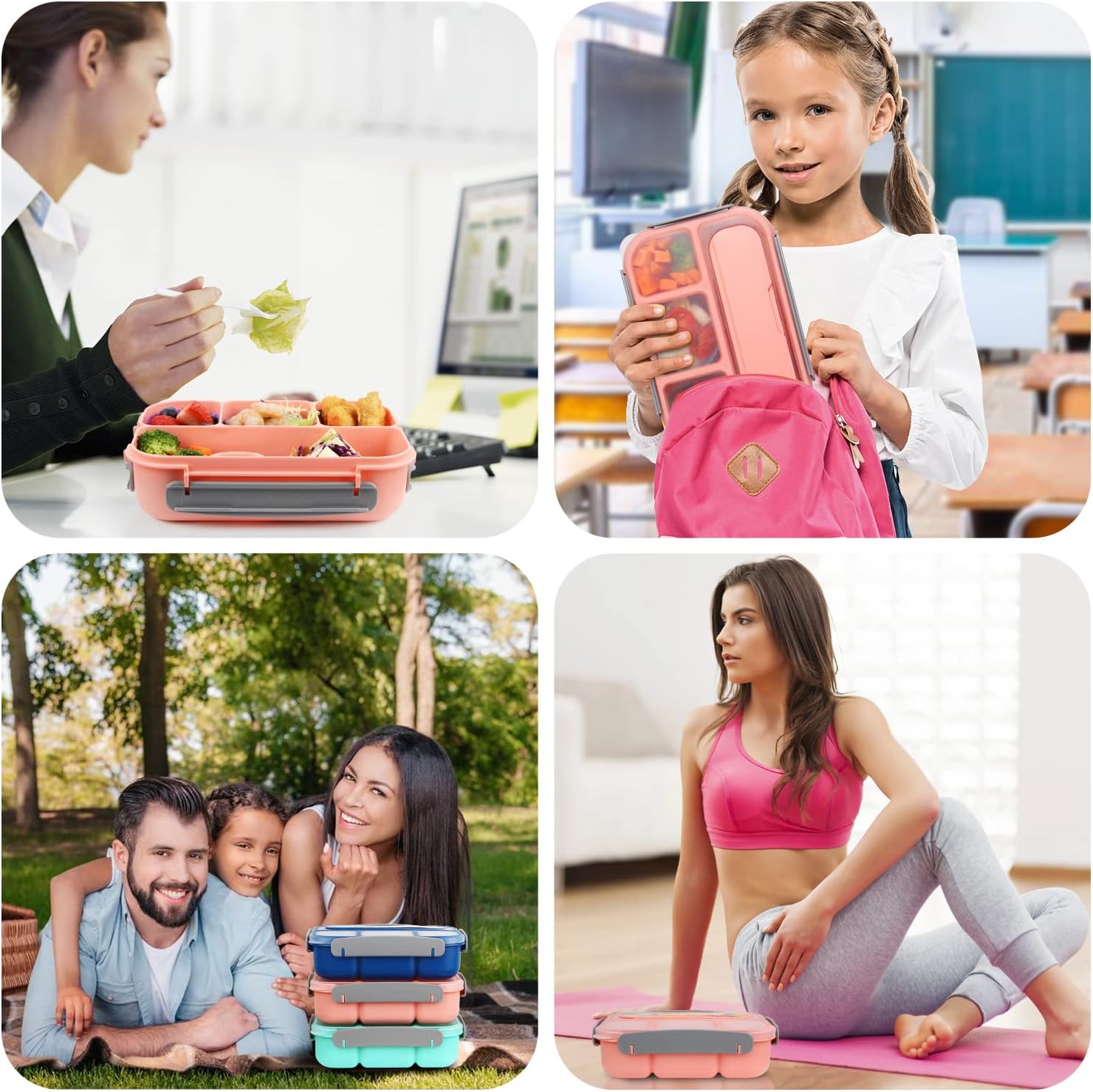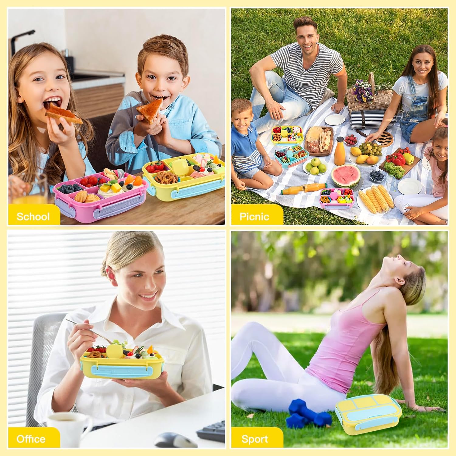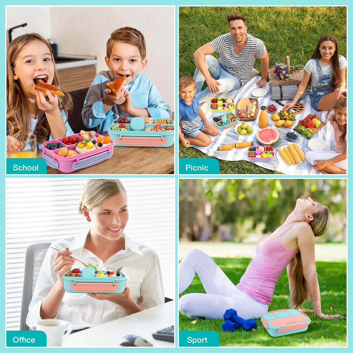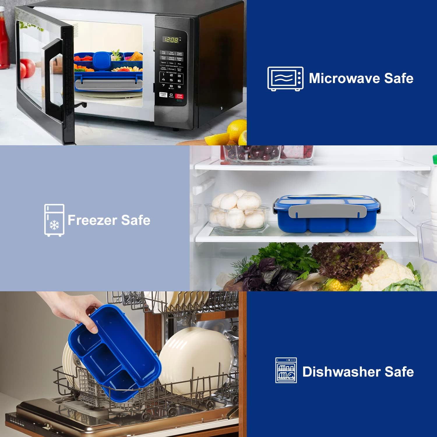 MaMix Bento Lunch Box Adult, Kids, Lunch Containers for Adults/Kids/Students,1300ML-4 Compartment (Blue)