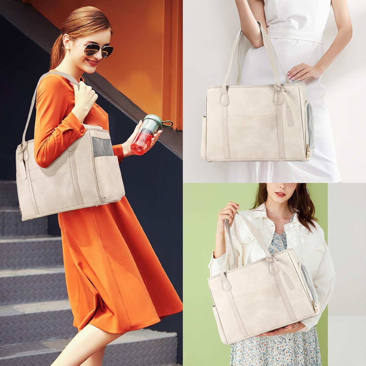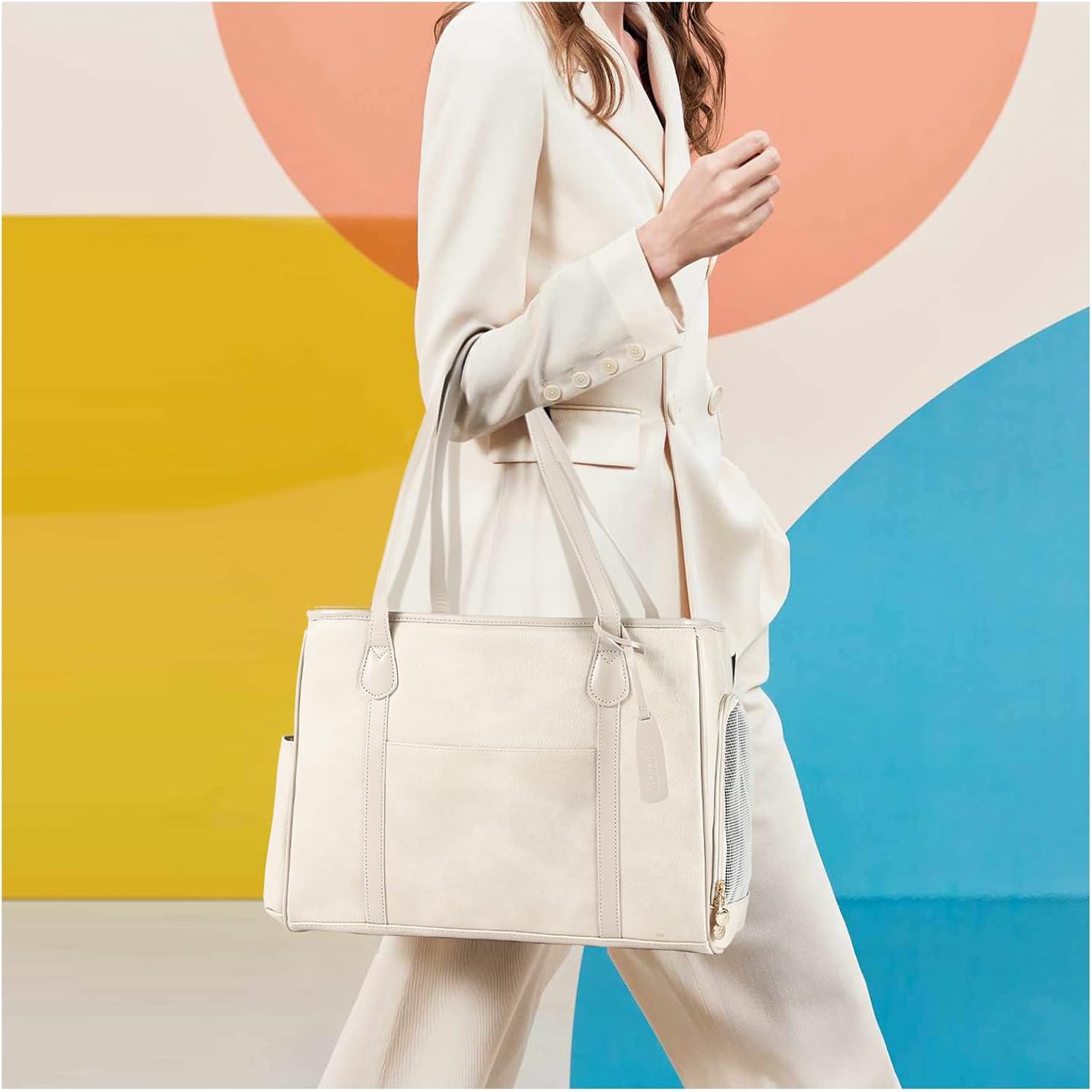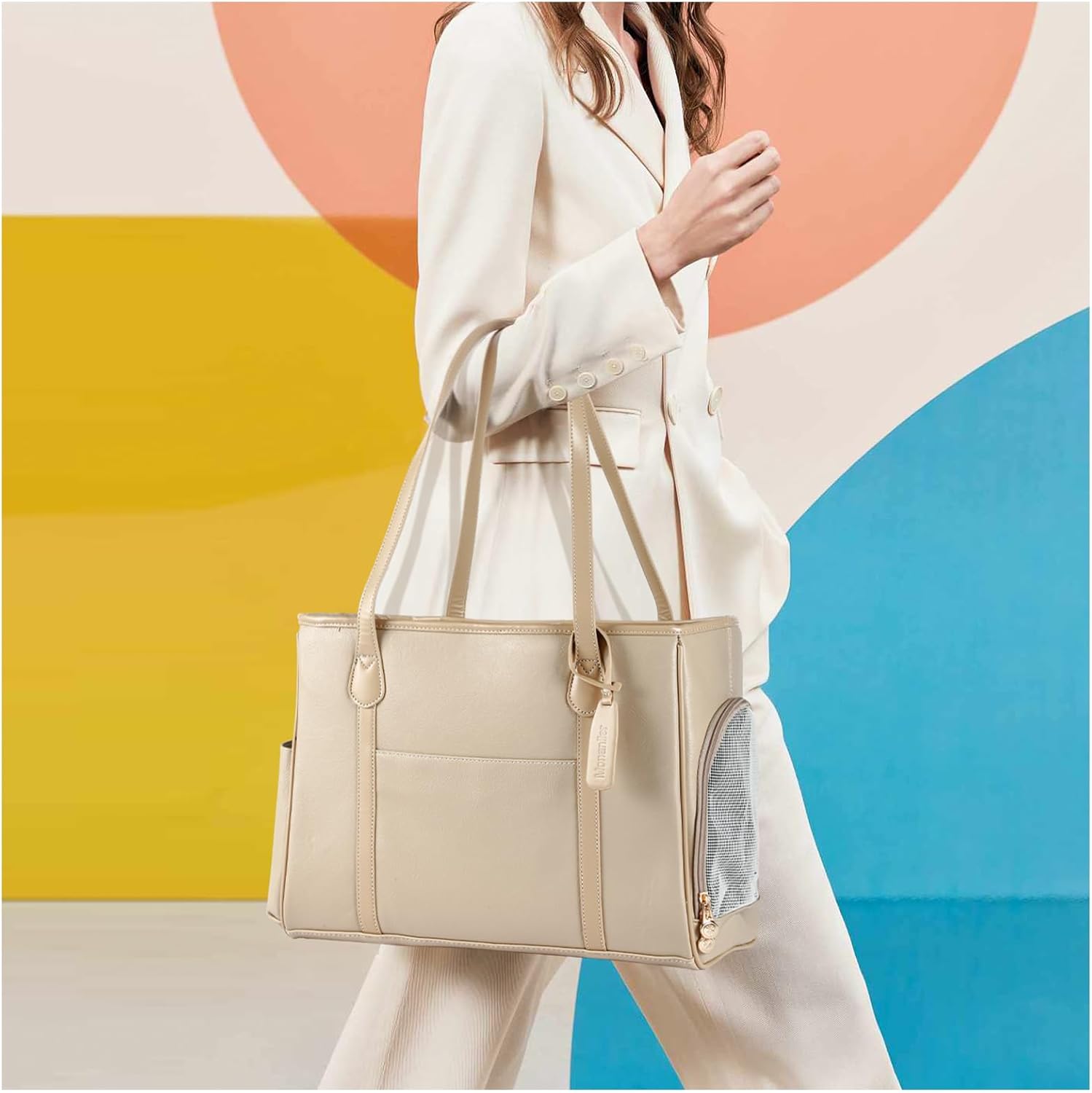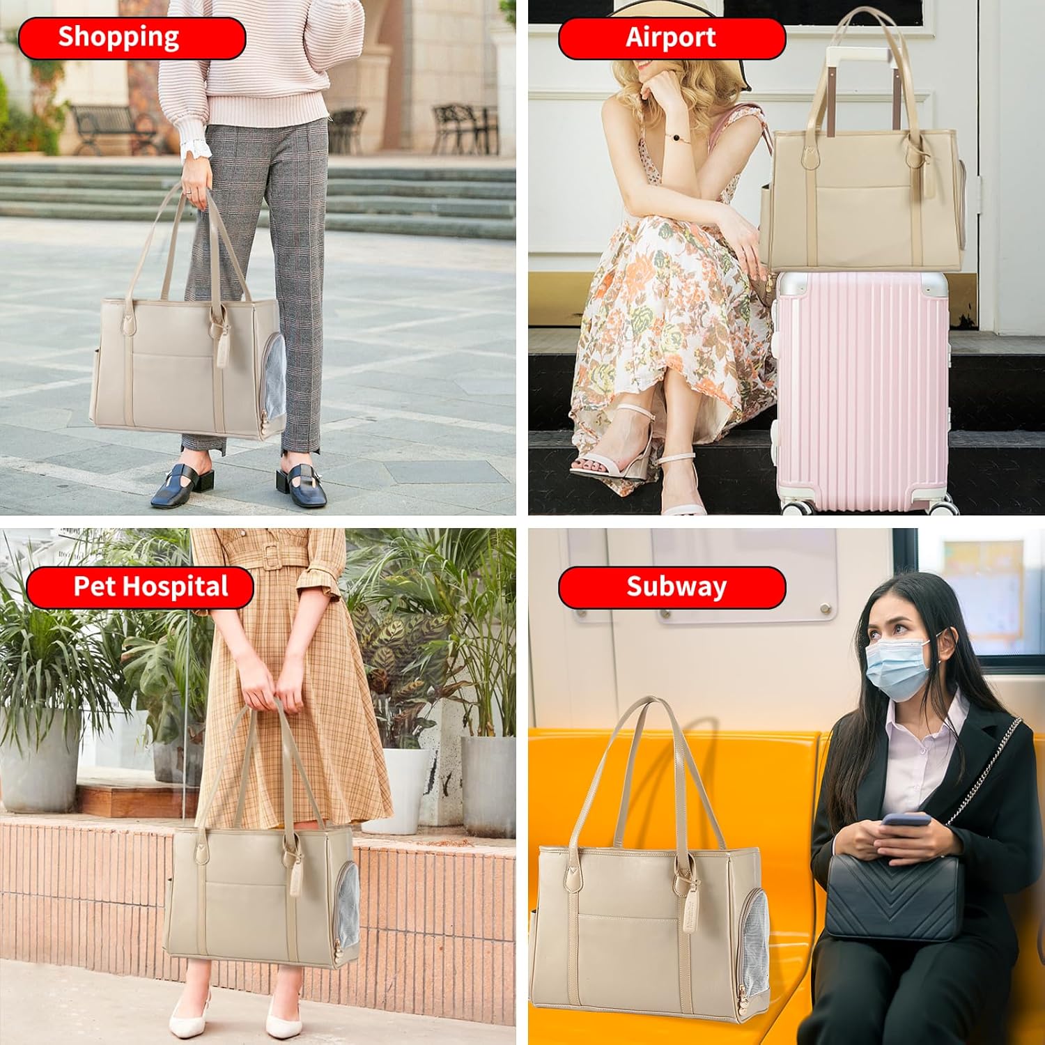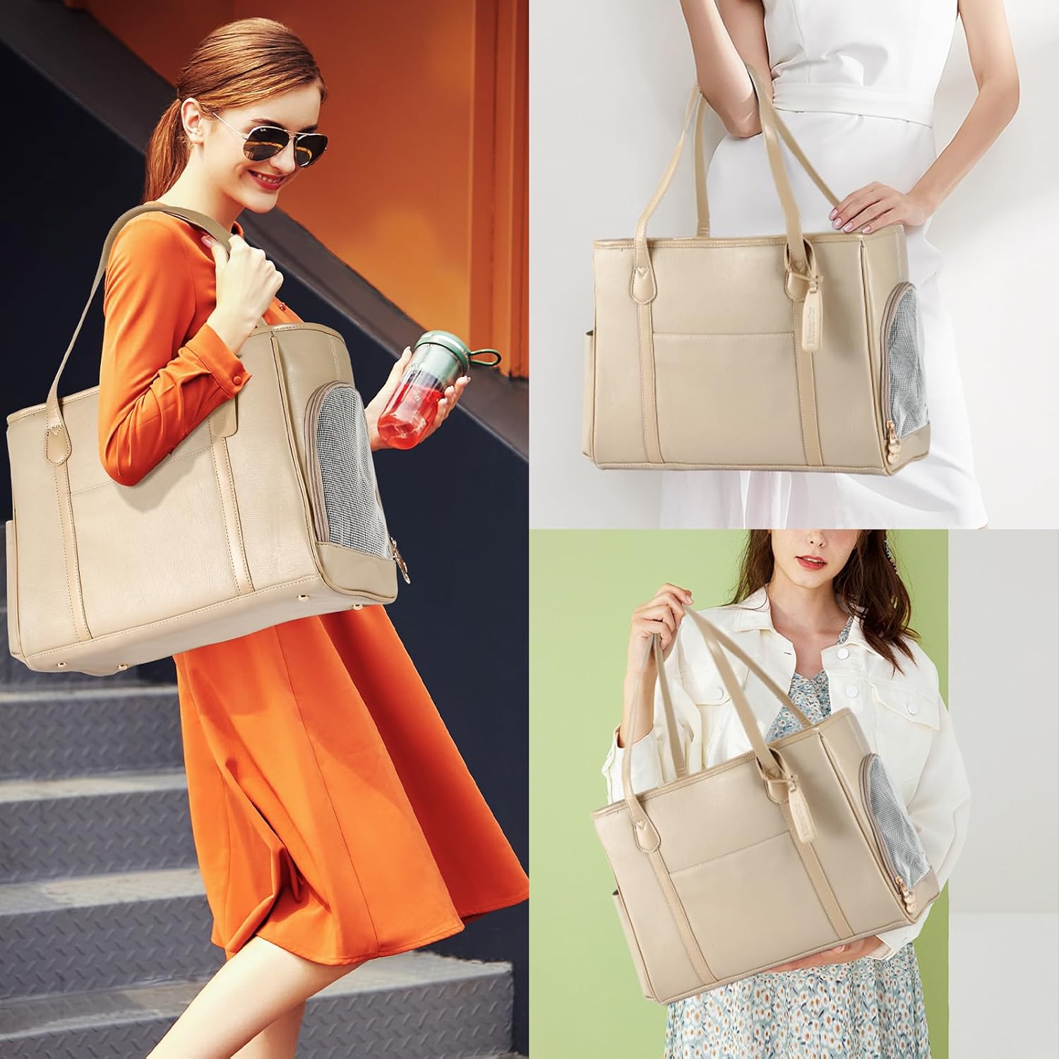 Monanller Stylish Dog Purse Carrier, Leather Pet Carrier Bag for Small Dogs Cats Puppy, Airline Approved Soft-Sided Carrier Beige