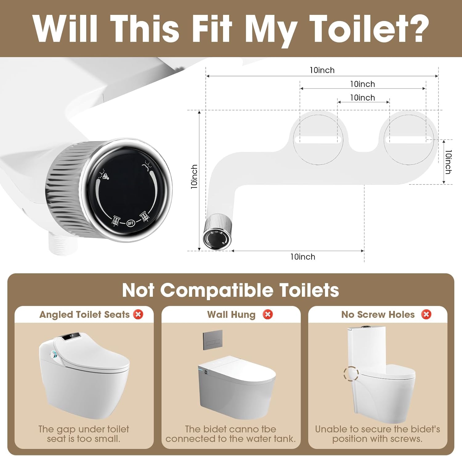 Ultra-Slim:Bidet body is only 0.35 inches thick,ensure the main structure without affecting the closure of the toilet lid