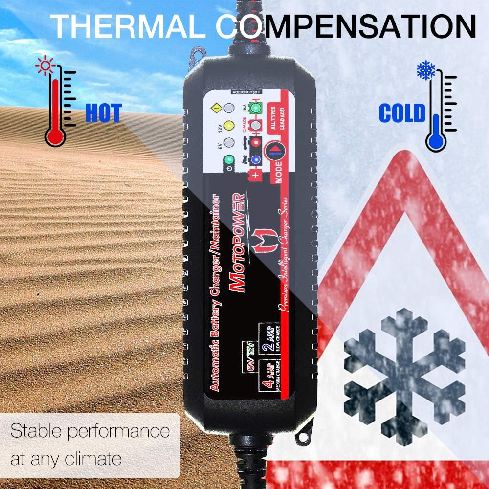 Multi-level Safety Protection & Battery Rescue - Micro-processor Controlled program. No worry about overcharge, short circuit and reverse polarity. Spark-free technology applied. Featured Constant Pulse Current Maintenance function helps the battery avoid excessive charge and discharge. It will extend the battery life and recover batteries more effectively.