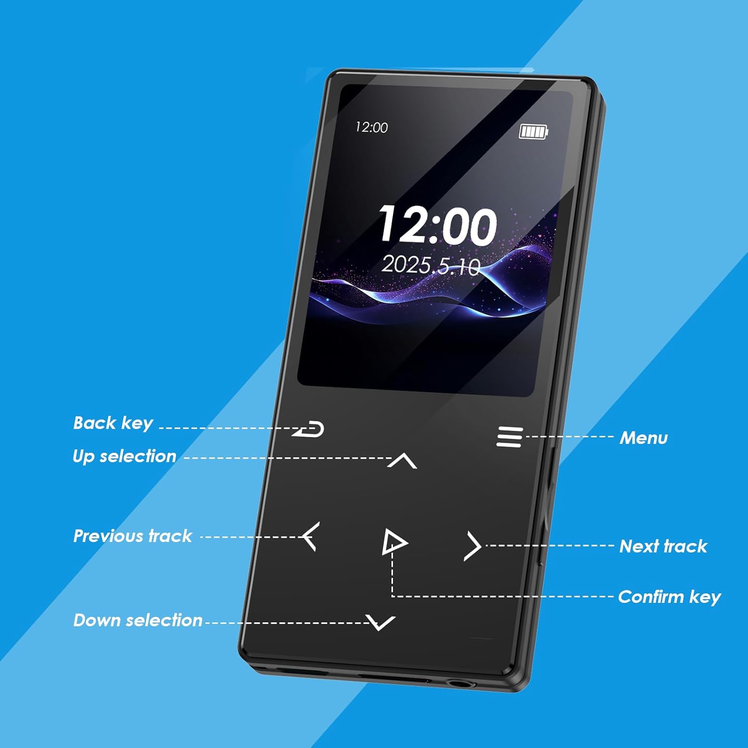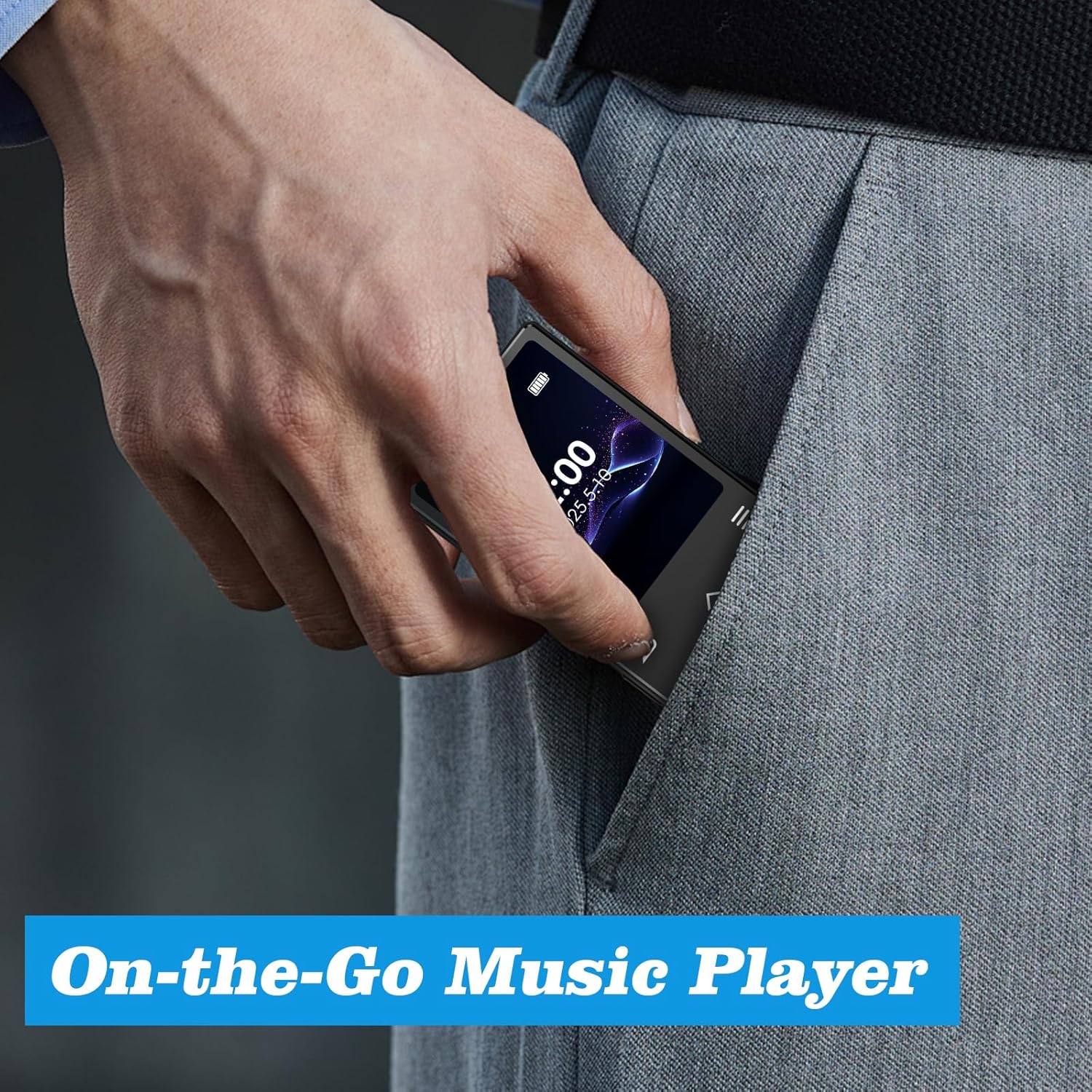 128GB MP3 player for kids with Hi-Fi sound, Bluetooth 5.0, and expandable storage. Ultra-portable with built-in speaker, supports videos, FM radio, e-books & more. Includes 64GB card & cable—perfect gift!
