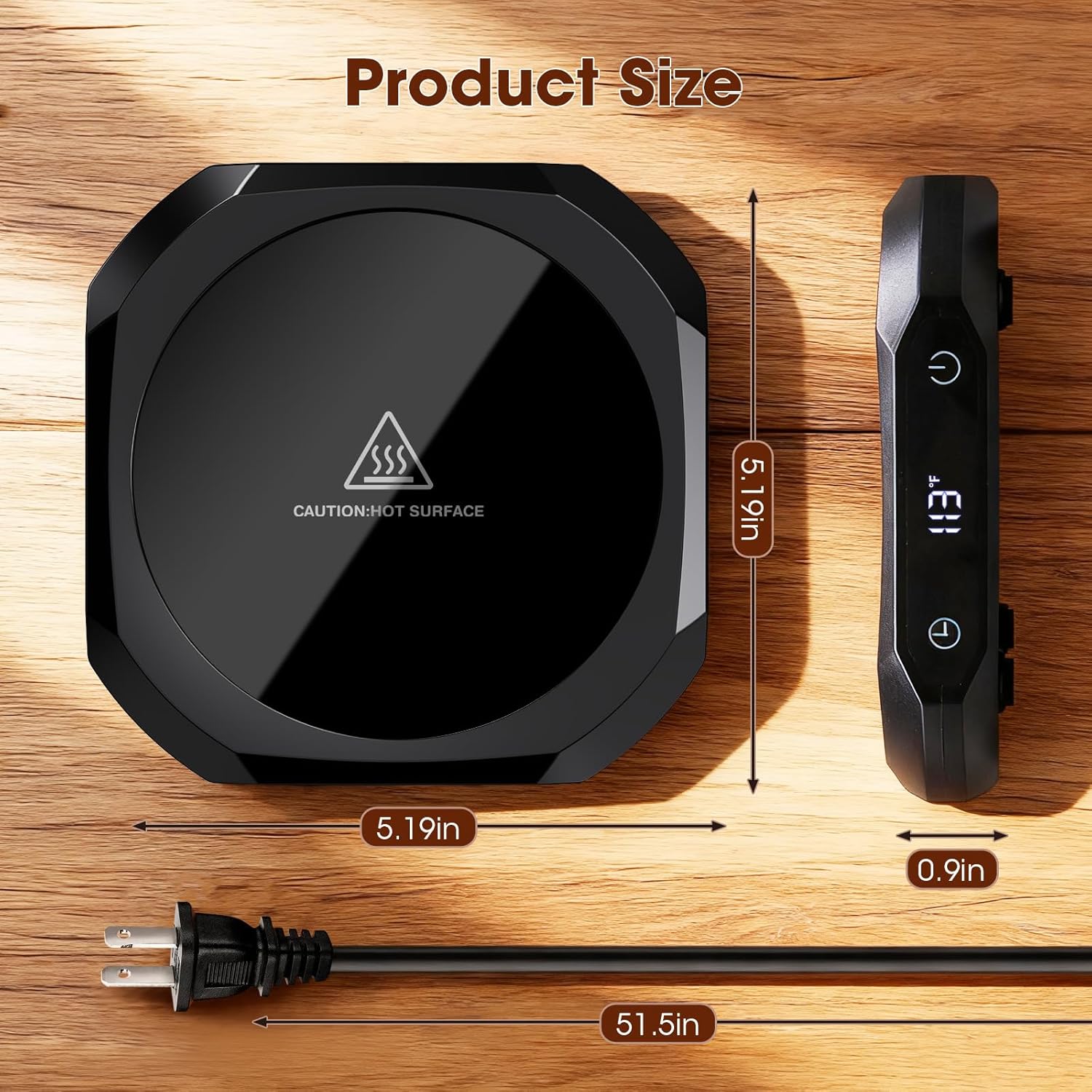 • 【FITS MOST MUGS】 This coffee mug warmer measures 5.1 inches in diameter and fits most sizes of coffee mugs, ceramic mugs, glasses, teacups, milk jugs, candles and more.