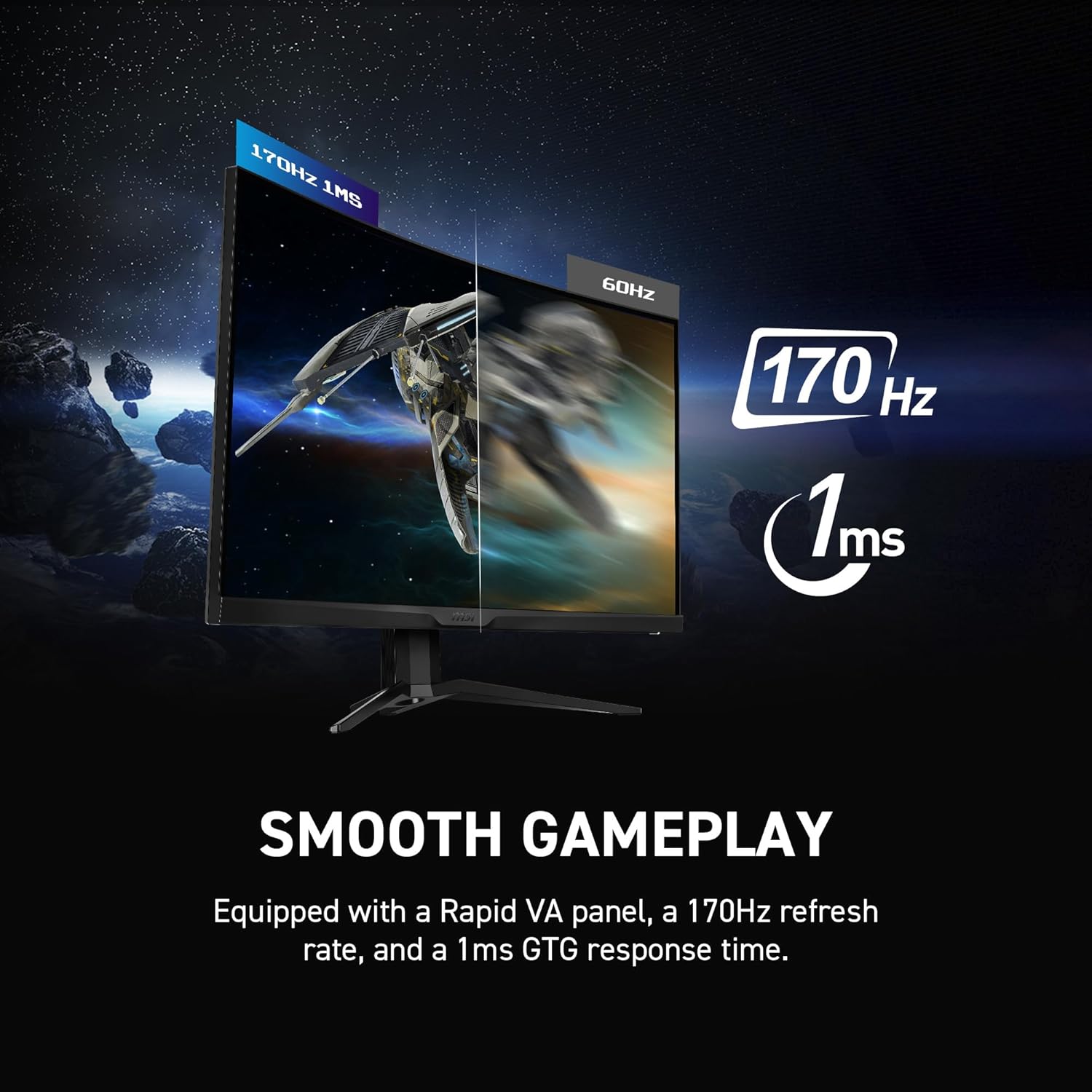 - 1ms response time eliminate screen tearing and choppy frame rates