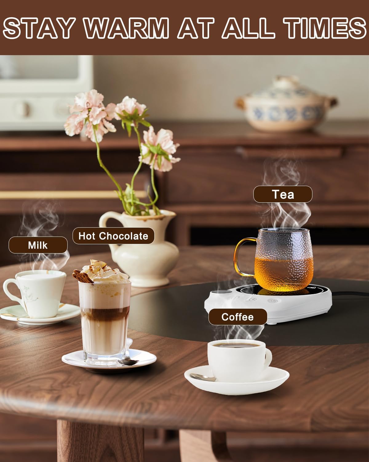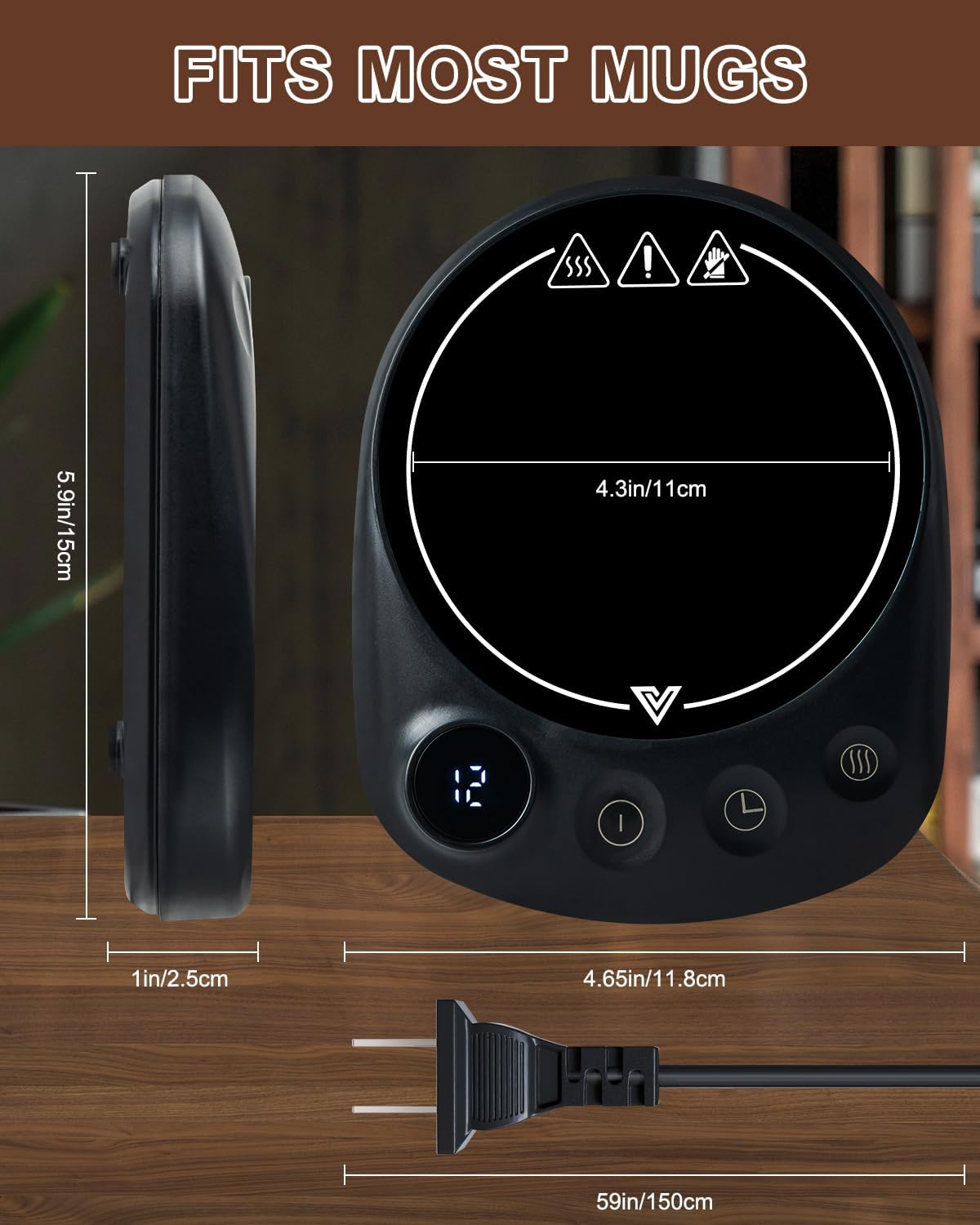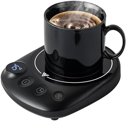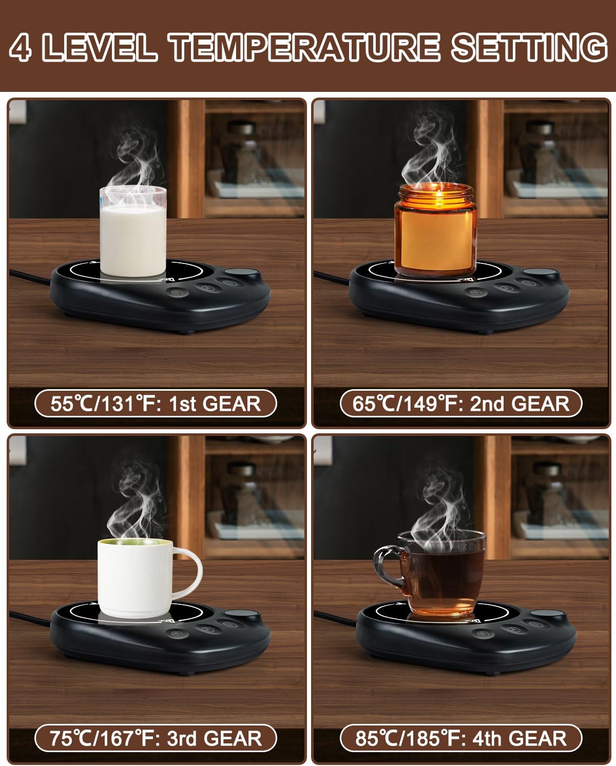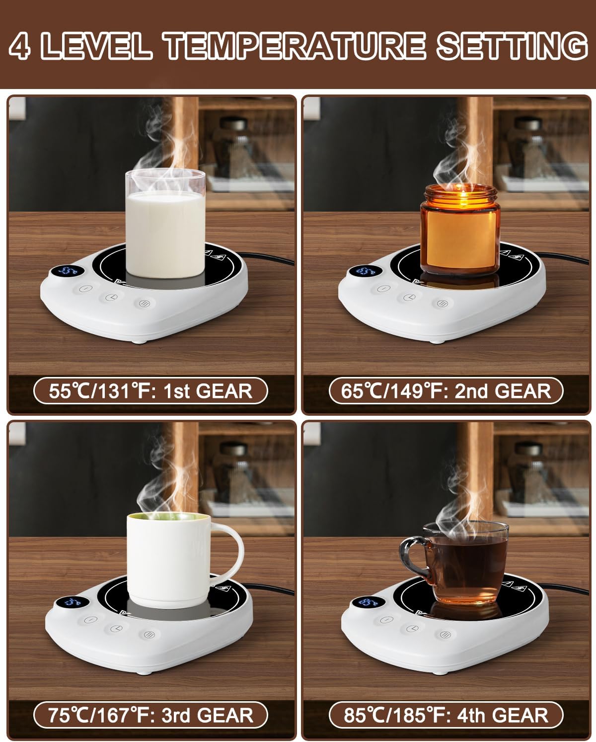 •  MYMULIKE Mug Warmer, Coffee Mug Warmer for Desk with 4 Temperature Settings (55℃/65℃/75℃/85℃), Coffee Warmer with Auto Shut Off, 1-12 Hour Timer, Desk Accessories for Office/Home